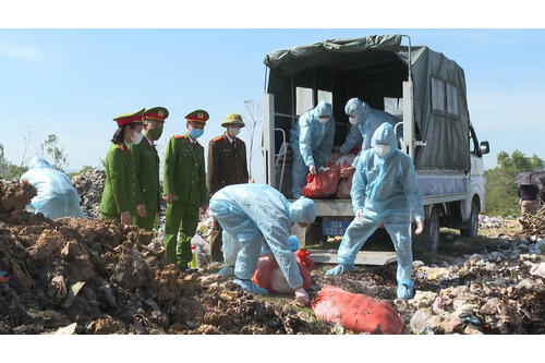 Công an xã Đồng Tiến tiêu hủy hơn 5 tạ lợn nhiễm dịch tả lợn Châu phi