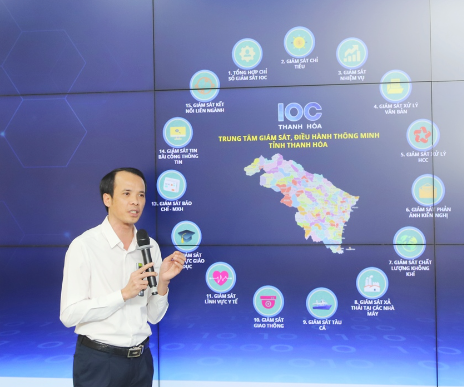 Trung tâm IOC Thanh Hóa được triển khai thử nghiệm từ tháng 7/2022 theo Kế hoạch số 192/KH-UBND của UBND tỉnh Thanh Hóa với 9 phân hệ, bao gồm: Giám sát Chỉ tiêu Kinh tế - Xã hội; Giám sát Hiệu quả hoạt động của cơ quan chính quyền: Quản lý văn bản điều hành; Thủ tục hành chính; Giám sát Tương tác - phục vụ phản hồi của người dân; Giám sát lĩnh vực Y tế; Giám sát lĩnh vực Giáo dục và Đào tạo; Giám sát lĩnh vực Nông nghiệp và Phát triển nông thôn; Giám sát lĩnh vực tài nguyên và môi trường; Giám sát lĩnh vực An toàn giao thông và an ninh trật tự; Giám sát Thông tin báo chí, mạng xã hội và truyền thông.