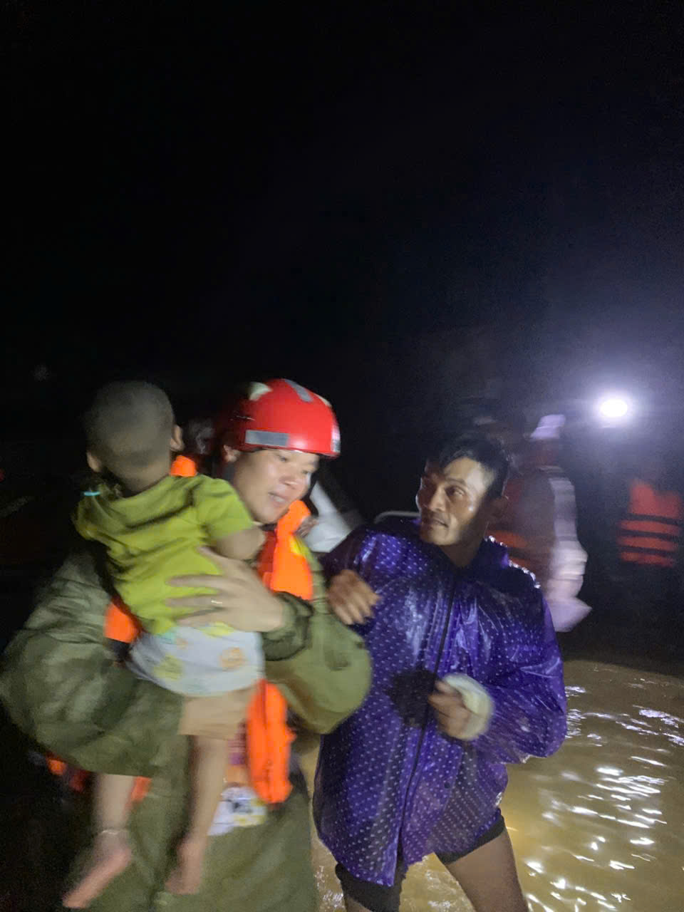 Cũng trong đêm, nước lũ dâng nhanh gây ngập lụt tại một số phố trên địa bàn xã Ngọc Lặc (khu vực thị trấn Ngọc Lặc cũ). Các chiến sỹ Cảnh sát PCCC và CNCH nhanh chóng triển khai lực lượng, phương tiện đến hiện trường, di chuyển người dân đến nơi an toàn. Đến 00 giờ đêm, trong quá trình thực hiện nhiệm vụ phát hiện có nạn nhân là B.T. Q, sinh năm 2000 trú tại phố 1, xã Ngọc Lặc, ngã bị thương trong lúc di chuyển lên tầng 2 để tránh lũ. Các chiến sỹ đã cõng nạn nhân vượt hơn 800 đường ngập nước, sử dụng xe chữa cháy đưa nạn nhân đến bệnh viên đa khoa khu vực Ngọc Lặc cấp cứu điều trị.