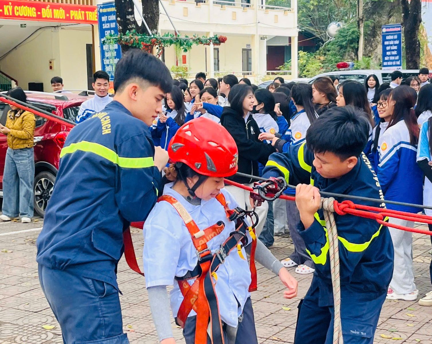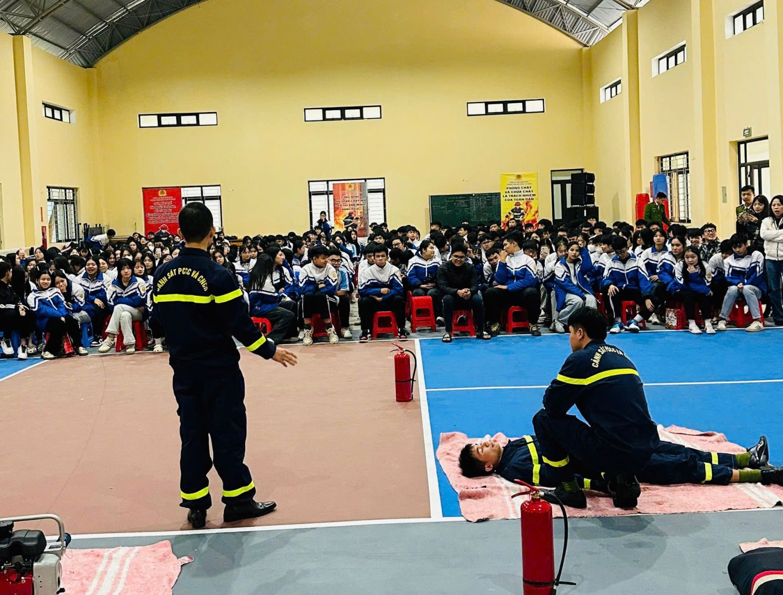 Lồng ghép những kiến thức, kỹ năng cơ bản về PCCC, cán bộ, chiến sĩ Phòng Cảnh sát PCCC và CNCH đã giới thiệu một số phương tiện, dụng cụ chuyên dụng phục vụ công tác PCCC và CNCH; tuyên truyền, hướng dẫn các em học sinh thực hiện các bước sơ cấp cứu ban đầu đối với các trường hợp ngạt khói, đuối nước; kỹ năng sử dụng bình cứu hỏa tại chỗ để dập tắt một số đám cháy thường gặp hay thoát nạn đúng cách trong môi trường khói khí độc… Đây là những kỹ năng sinh tồn thiết yếu cho các em trong trường hợp bắt gặp hoặc bị mắc kẹt trong đám cháy.