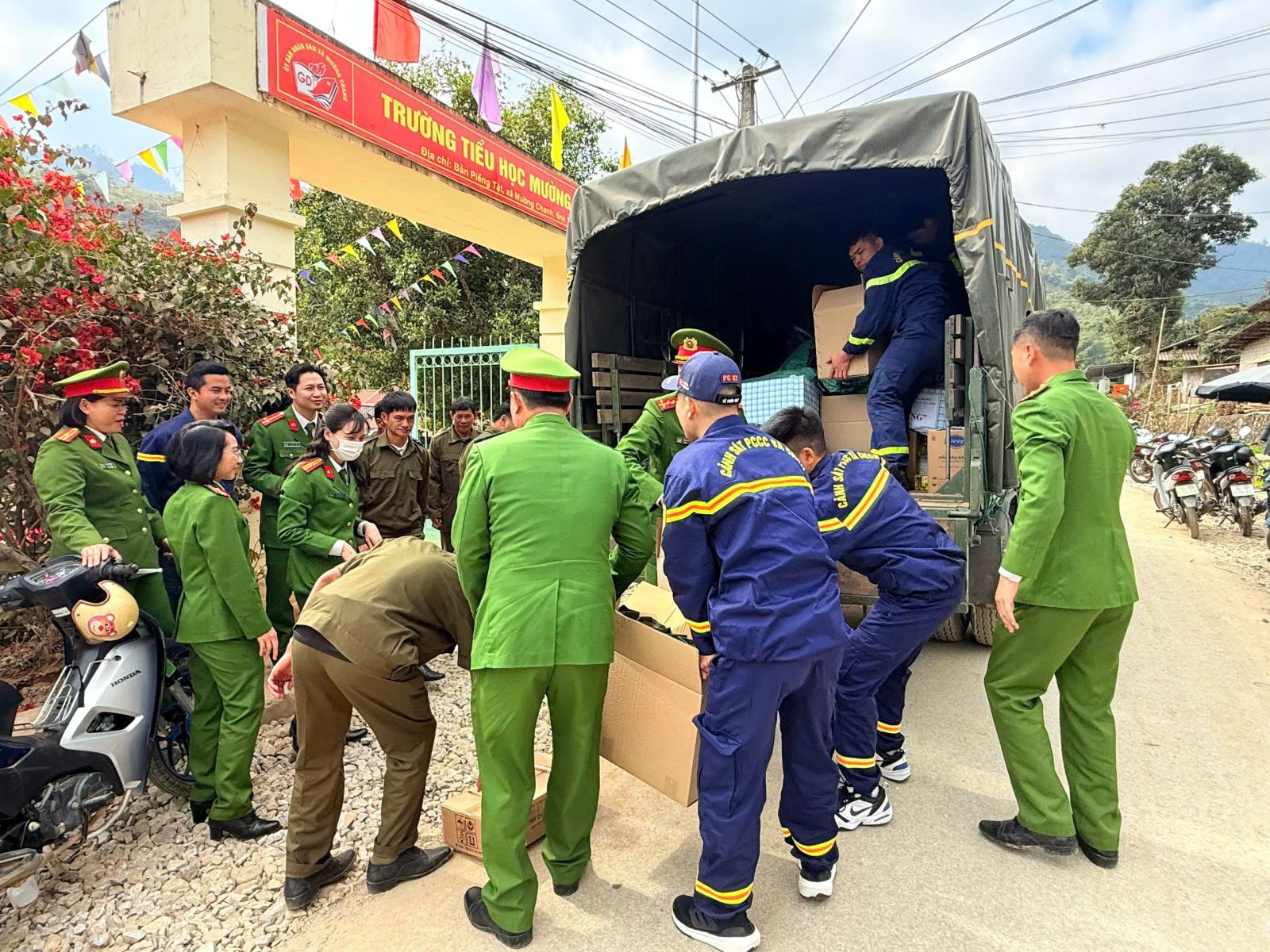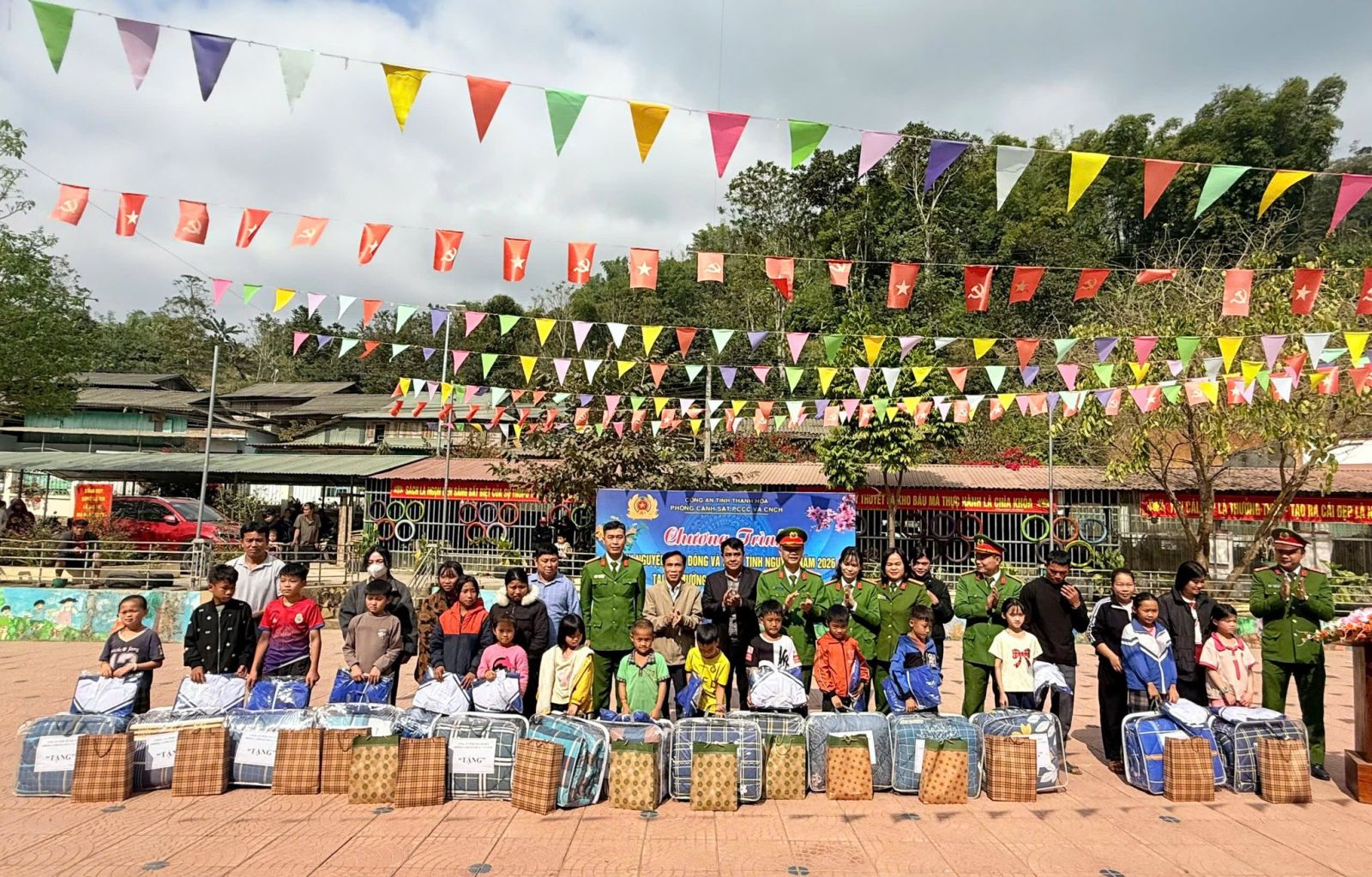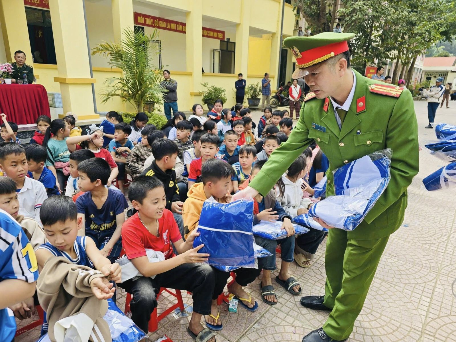 Ngay từ sáng sớm, những món quà nghĩa tình đã được Đoàn công tác ân cần trao tận tay bà con Nhân dân và các em học sinh vùng cao. Chương trình dành sự quan tâm sâu sắc tới các em học sinh có hoàn cảnh khó khăn tại các điểm trường Piềng Tặt và Chai Lách. Đoàn đã trao tặng 20 chăn ấm, 20 phần quà cho các em nhỏ có hoàn cảnh đặc biệt khó khăn; đồng thời trao 364 áo ấm cho học sinh tại hai điểm trường. Những chiếc áo mới, tấm chăn ấm không chỉ xua tan cái lạnh vùng cao mà còn gửi gắm tình yêu thương, niềm tin và hy vọng, tiếp sức các em vững bước đến trường.