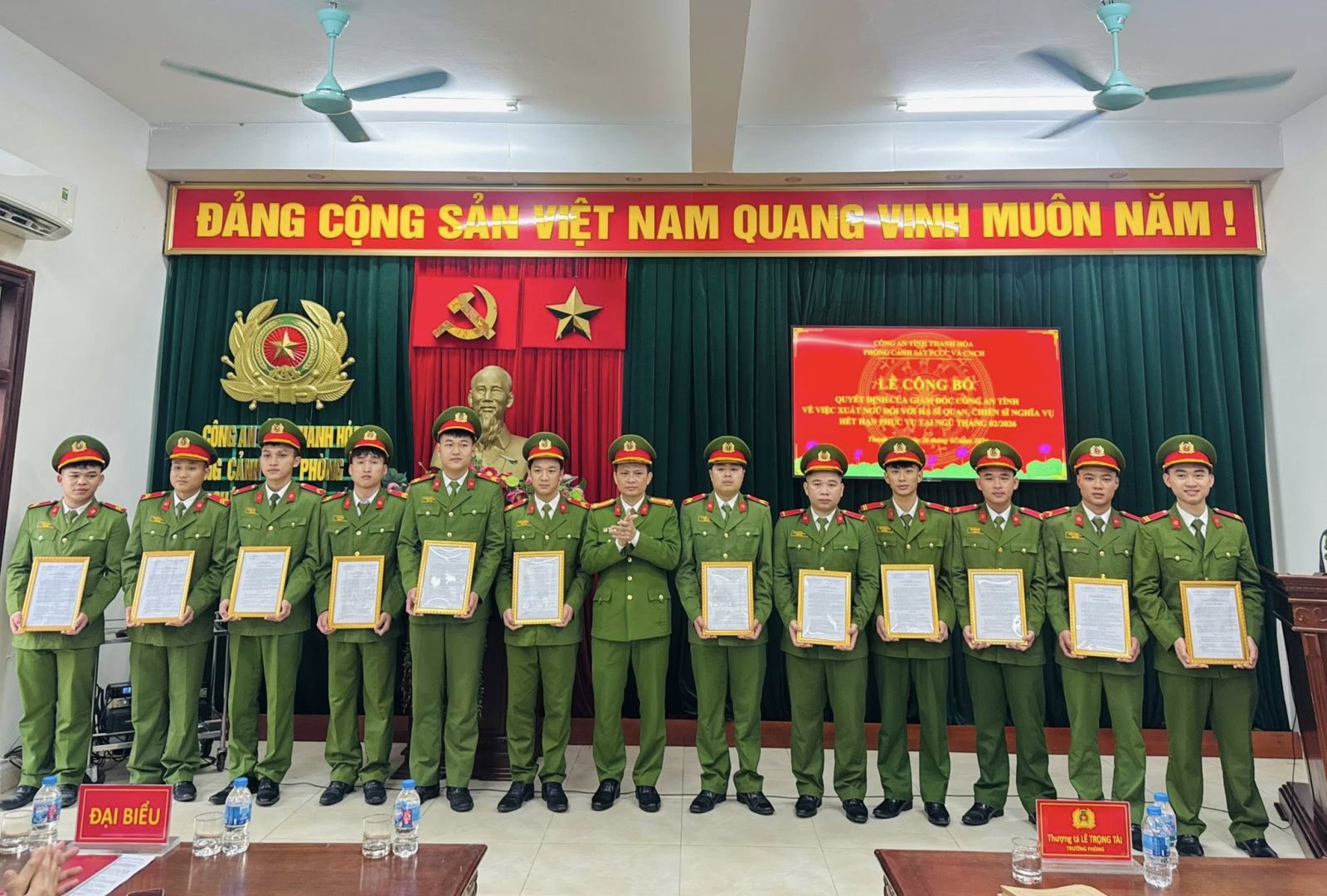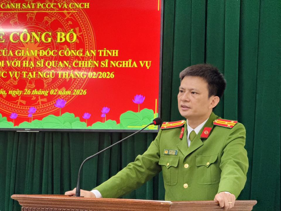 Ngày 26/02/2026, Phòng Cảnh sát PCCC và CNCH - Công an tỉnh Thanh Hóa tổ chức Lễ công bố Quyết định của Giám đốc Công an tỉnh về việc xuất ngũ đối với 80 đồng chí chiến sĩ nghĩa vụ hết hạn phục vụ tại ngũ tháng 02/2026. Tham dự buổi lễ có đại diện các đồng chí lãnh đạo Phòng; chỉ huy các đội nghiệp vụ cùng toàn thể cán bộ, chiến sĩ trong đơn vị.