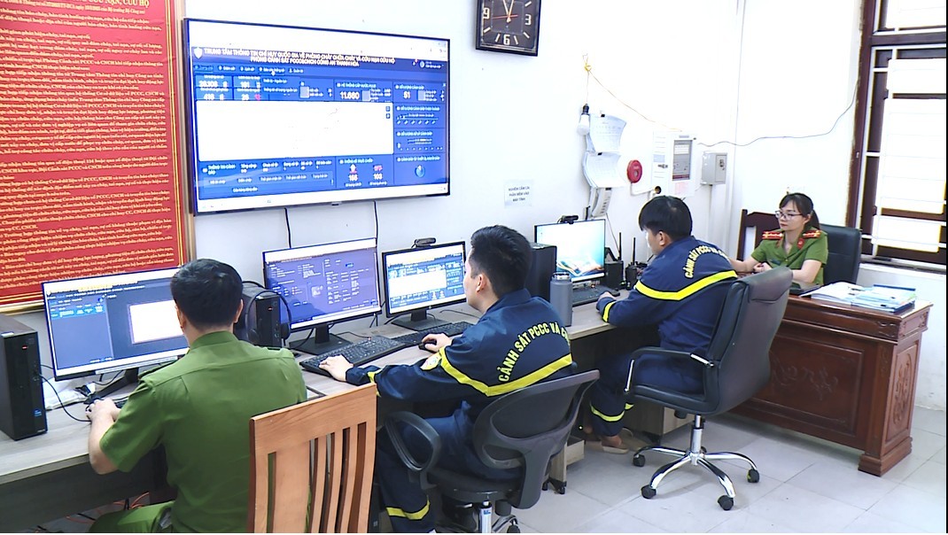 Trung tâm chỉ huy 114 Thanh Hóa tiếp nhận và xử lý tín hiệu báo cháy theo thời gian thực.