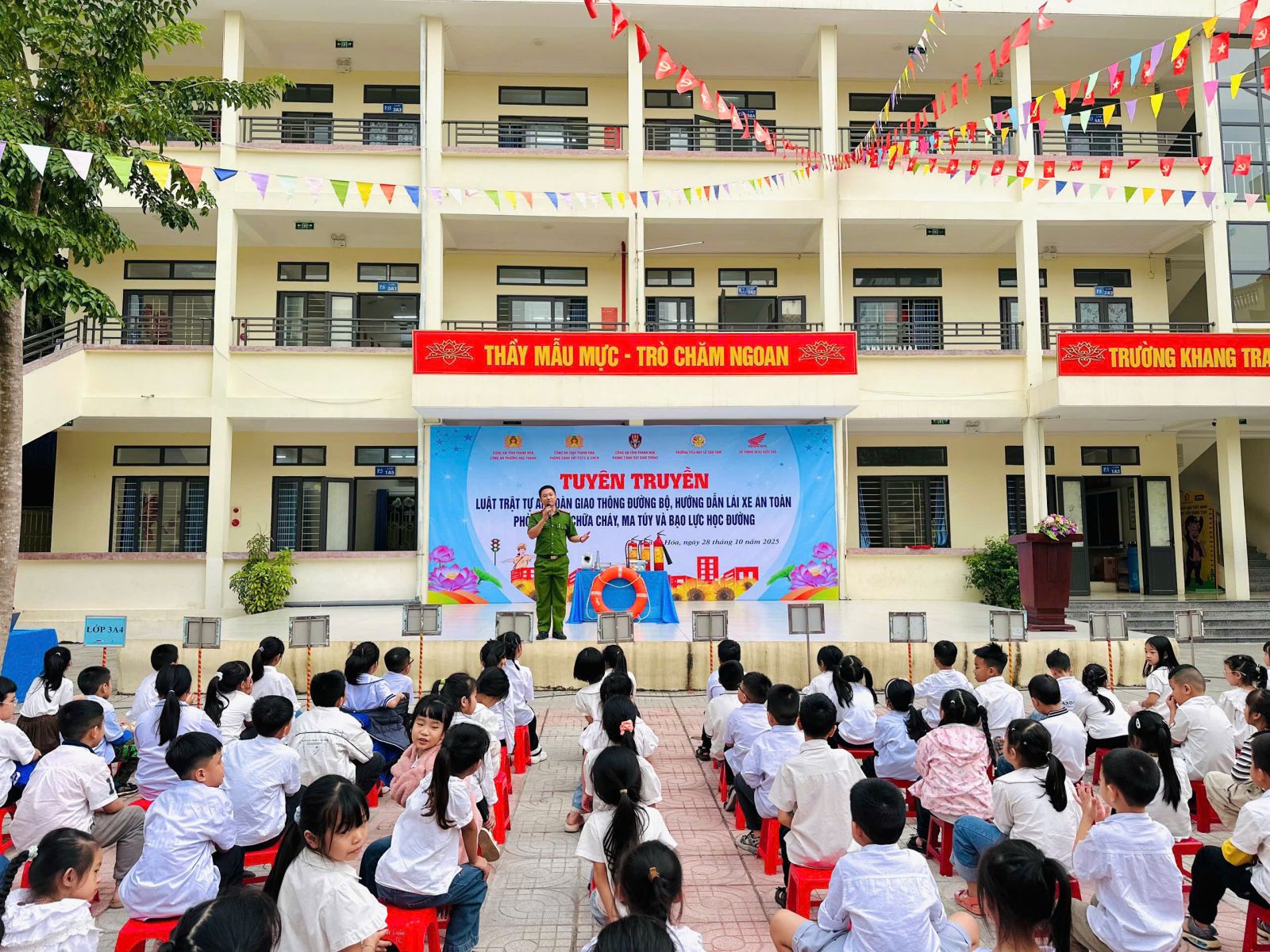 Nhằm tăng cường công tác tuyên truyền, giáo dục pháp luật về trật tự an toàn giao thông và phòng cháy, chữa cháy trong trường học, hướng dẫn trẻ các kỹ năng sống, ngày 28/10/2025, Phòng Cảnh sát PCCC và CNCH, Công an tỉnh Thanh Hóa đã phối hợp với Công an phường Hạc Thành, Phòng Cảnh sát Giao thông và Trường Tiểu học Lê Văn Tám tổ chức chương trình tuyên truyền về trật tự an toàn giao thông đường bộ, hướng dẫn lái xe an toàn và kỹ năng phòng cháy, chữa cháy, thoát nạn cho cán bộ, giáo viên và học sinh nhà trường.