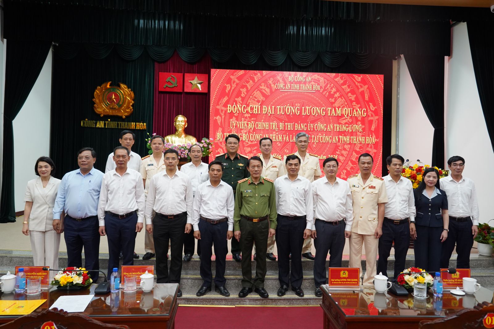 Phát biểu chỉ đạo tại buổi làm việc, Bộ trưởng Lương Tam Quang ghi nhận, biểu dương những kết quả, thành tích nổi bật mà lực lượng Công an Thanh Hóa đã đạt được trong thời gian qua. Đồng thời nhấn mạnh, năm 2026 có ý nghĩa đặc biệt quan trọng, là năm tạo nền tảng để thực hiện thắng lợi các mục tiêu, nhiệm vụ của cả nhiệm kỳ và hướng tới tầm nhìn phát triển đất nước đến năm 2045. Trên cơ sở đó, lực lượng Công an Thanh Hóa cần tiếp tục đổi mới mạnh mẽ tư duy, phương pháp công tác, thống nhất nhận thức về vai trò, trách nhiệm của lực lượng Công an nhân dân trong giai đoạn phát triển mới; gương mẫu, đi đầu trong tổ chức thực hiện Nghị quyết Đại hội XIV của Đảng và Nghị quyết Đại hội Đảng bộ Công an Trung ương lần thứ VIII bằng những kết quả, sản phẩm cụ thể, đo đếm được.