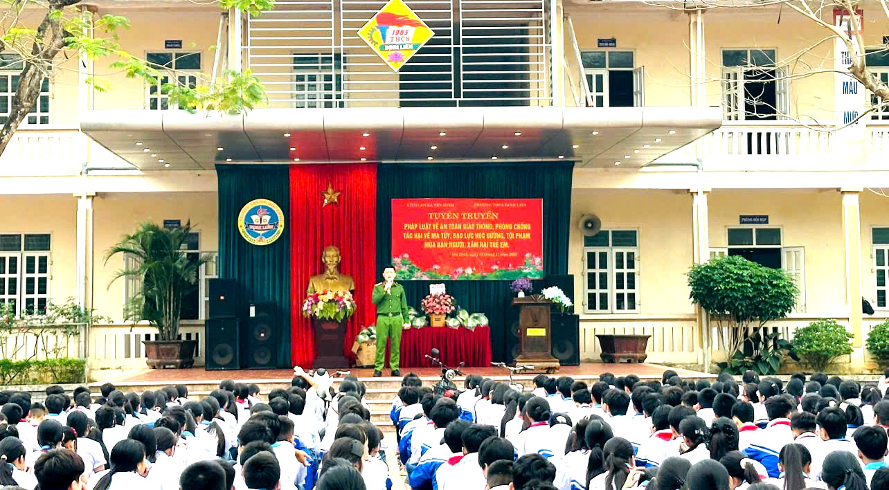 Đối với học sinh Trường THCS Định Liên, Công an xã Yên Định đã tổ chức buổi tuyên truyền cho 769 học sinh và giáo viên. Bên cạnh các chuyên đề về phòng chống tội phạm và xâm hại trẻ em, cán bộ Công an tập trung tuyên truyền về các hành vi vi phạm trật tự an toàn giao thông phổ biến ở lứa tuổi học sinh như đi xe đạp, xe đạp điện không đúng phần đường, không đội mũ bảo hiểm, dàn hàng ngang, sử dụng điện thoại khi tham gia giao thông. Lực lượng tuyên truyền cũng phân tích nhiều vụ việc điển hình để học sinh nhận thức rõ hậu quả, từ đó nâng cao ý thức tự bảo vệ mình và chấp hành quy định pháp luật.