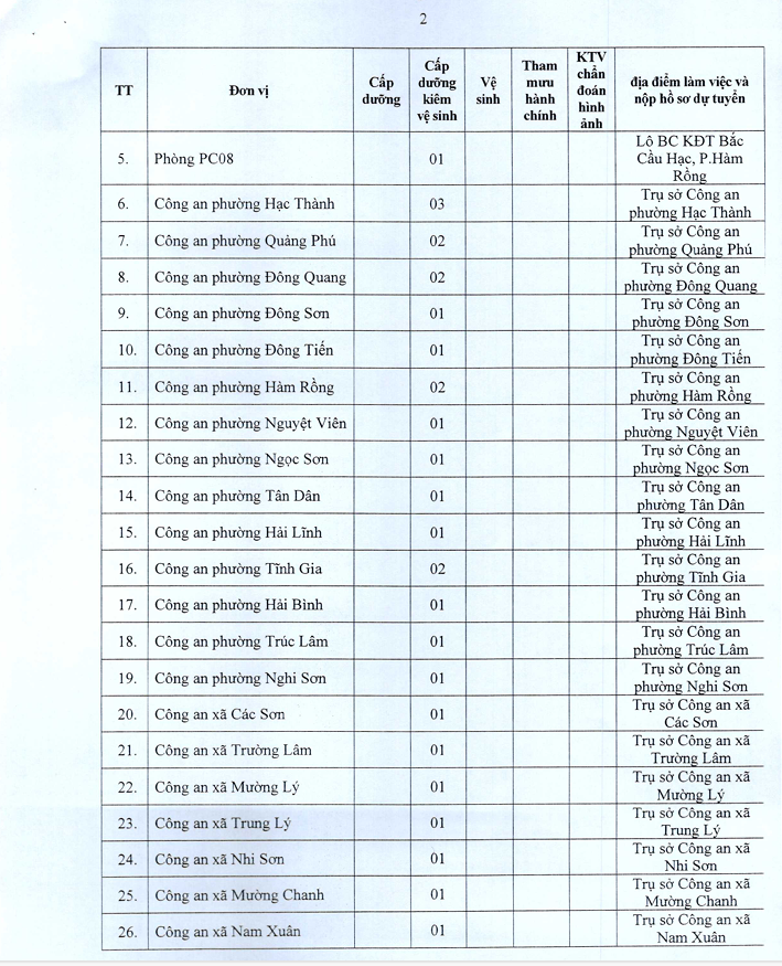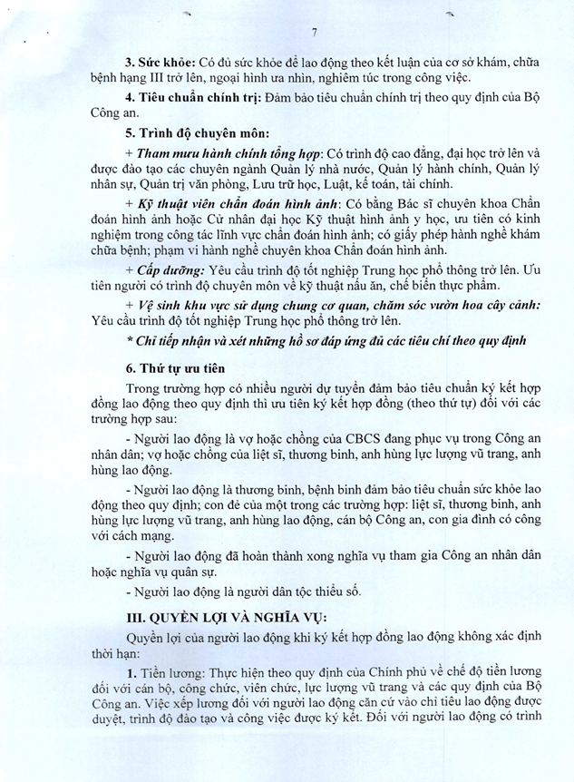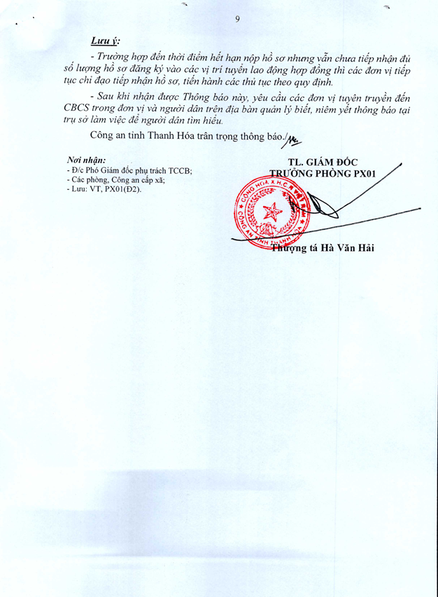 Thông báo về việc tuyển dụng lao động hợp đồng trong Công an Thanh Hóa