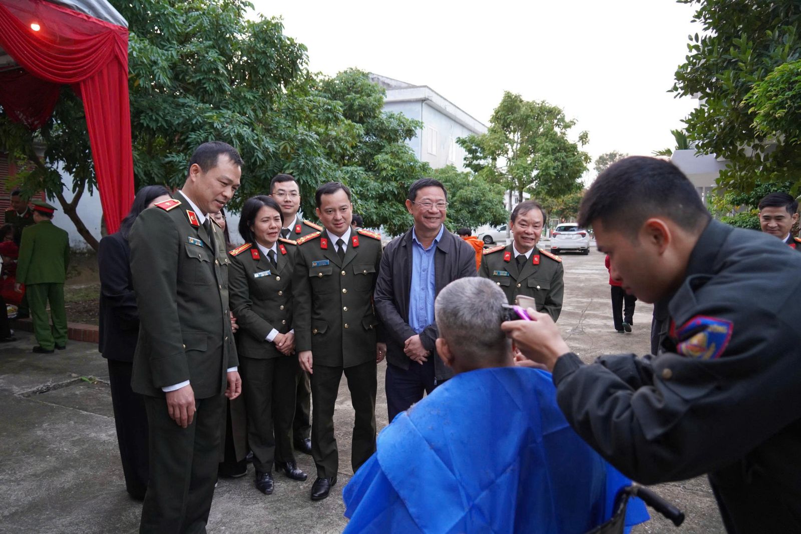 Song song với đó là hoạt động của “Gian hàng Tết 0 đồng”, nơi các nhu yếu phẩm thiết yếu được cán bộ, chiến sĩ Công an tỉnh chuẩn bị chu đáo và trao tận tay các đối tượng. Trong khuôn viên Trung tâm còn tổ chức hoạt động cắt tóc miễn phí, góp phần giúp các đối tượng chỉnh trang diện mạo, tạo tâm lý vui tươi, phấn khởi trước thềm năm mới.