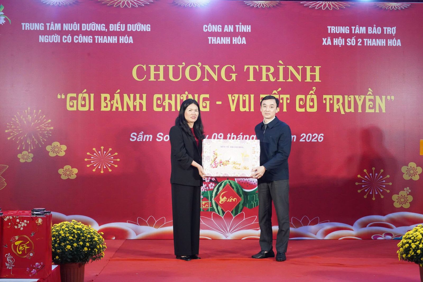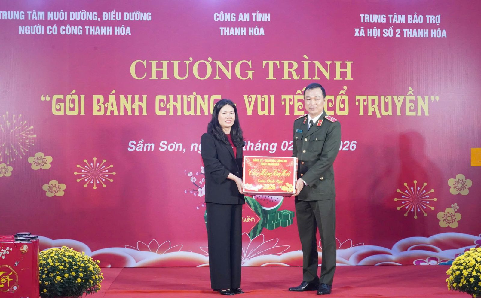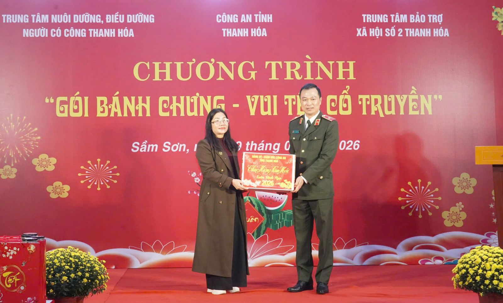 Với đạo lý “uống nước nhớ nguồn”, nhân dịp Tết Nguyên đán Bính Ngọ 2026, chiều 09/02, Công an tỉnh Thanh Hóa tổ chức Chương trình “Gói bánh chưng - Vui Tết cổ truyền” tại Trung tâm Nuôi dưỡng, điều dưỡng người có công và Trung tâm Bảo trợ xã hội số 2 tỉnh Thanh Hóa. Thiếu tướng Tô Anh Dũng, Giám đốc Công an tỉnh đã đến thăm, động viên và tặng quà người có công với cách mạng, các đối tượng bảo trợ xã hội đang nuôi dưỡng, chăm sóc tại 2 Trung tâm.