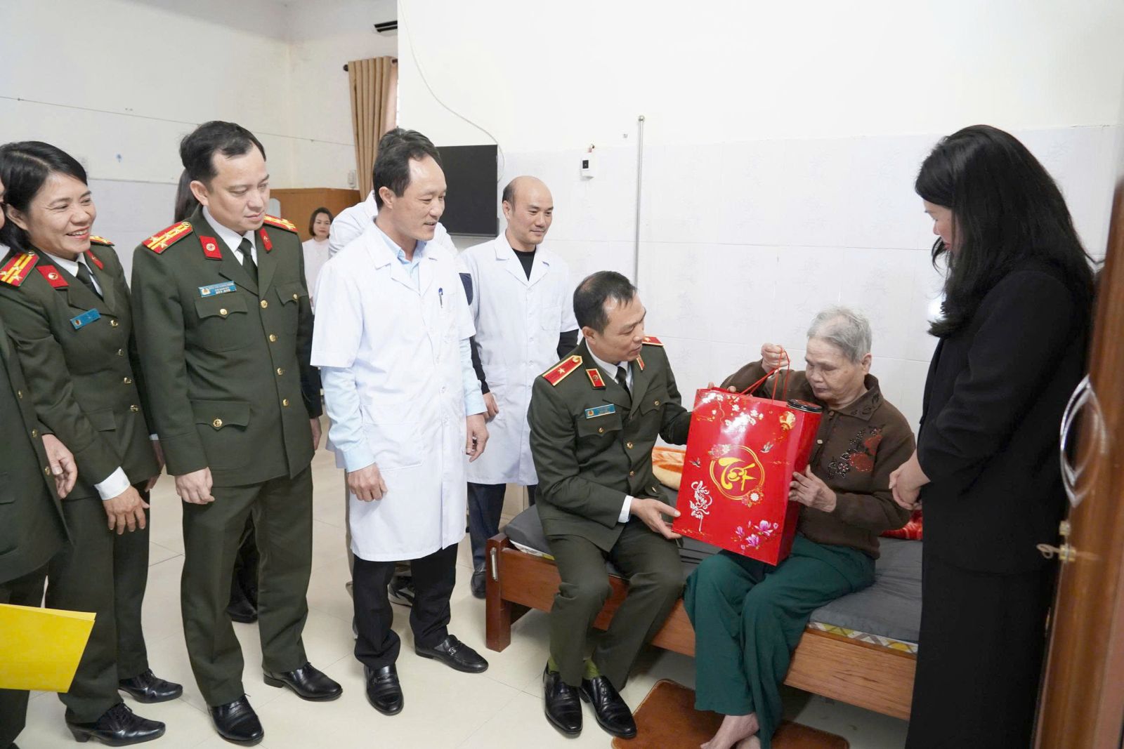 Đồng chí Giám đốc Công an tỉnh ân cần thăm hỏi tình hình sức khỏe, đời sống sinh hoạt, điều kiện chăm sóc, điều trị của từng người, lắng nghe tâm tư, nguyện vọng, đồng thời bày tỏ sự tri ân sâu sắc trước những hy sinh, cống hiến to lớn của các thương binh, thân nhân liệt sĩ đối với sự nghiệp đấu tranh giải phóng dân tộc, xây dựng và bảo vệ Tổ quốc.