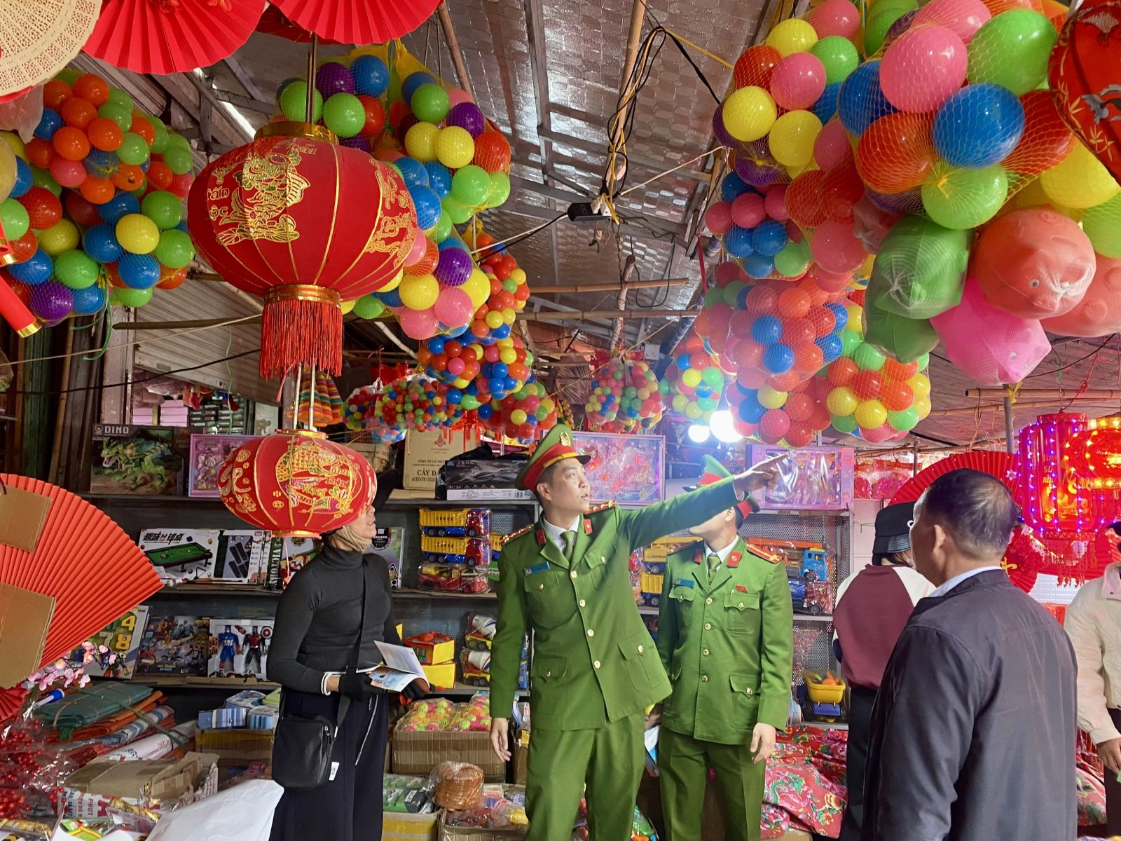 Tại các khu vực giao thương trọng điểm, nhất là tại các chợ truyền thống dễ nhận thấy tình trạng hàng hóa "bủa vây" mọi lối đi. Để chuẩn bị nguồn hàng phục vụ Tết, các hộ kinh doanh đã tăng cường tích trữ hàng hóa với số lượng lớn, chủ yếu là các mặt hàng dễ phát sinh cháy, nổ như: vải vóc, đồ gia dụng bằng nhựa, đặc biệt là vàng mã, đồ trang trí Tết.