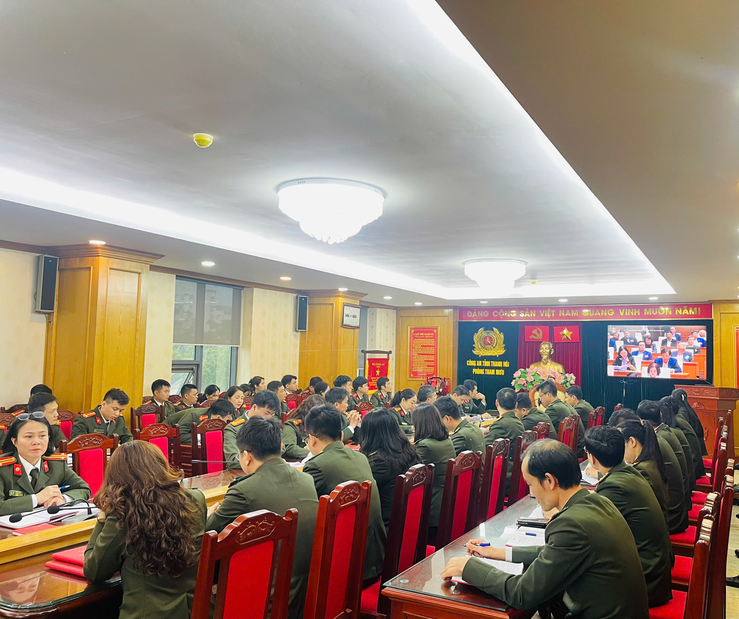 Các đảng bộ, chi bộ cơ sở trực thuộc Đảng bộ Công an tỉnh tổ chức cho đảng viên, CBCS theo dõi Hội nghị toàn quốc