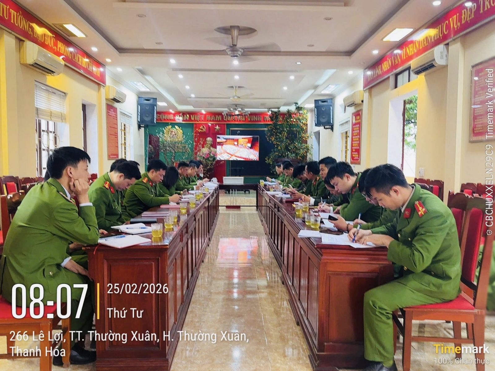 Những ngày đầu Xuân mới Bính Ngọ, trong không khí phấn khởi, quyết tâm thực hiện thắng lợi nhiệm vụ năm 2026, sáng 25/02/2026, các cấp ủy, tổ chức cơ sở đảng trong toàn Đảng bộ và lực lượng Công an Thanh Hoá đã nghiêm túc tổ chức học tập, quán triệt, triển khai thực hiện Nghị quyết số 79-NQ/TW ngày 06/01/2026 của Bộ Chính trị về phát triển kinh tế Nhà nước và Nghị quyết số 80-NQ/TW ngày 07/01/2026 của Bộ Chính trị về phát triển văn hoá Việt Nam.