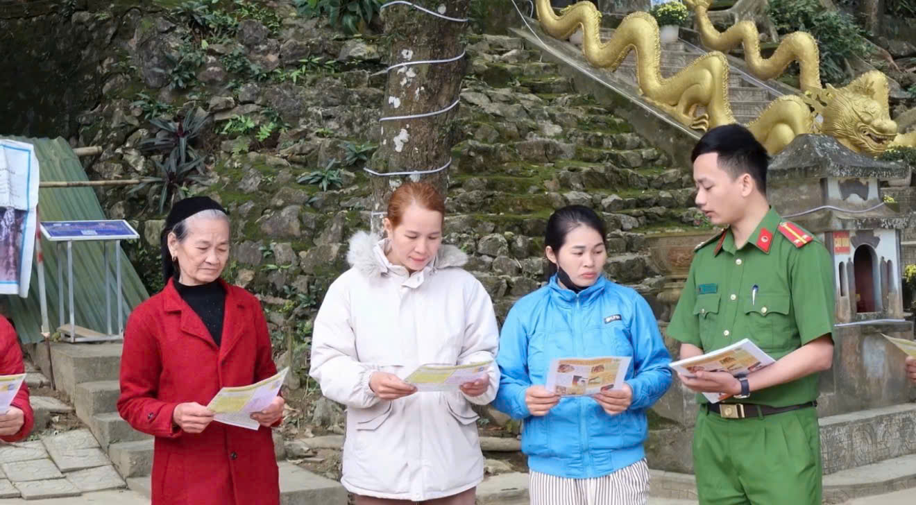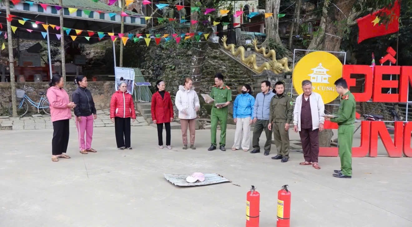 Công an xã Cẩm Tú phối hợp với Đội Chữa cháy và CNCH khu vực 6 tổ chức tuyên truyền, kiểm tra công tác PCCC tại di tích lịch sử Đền Cùng
