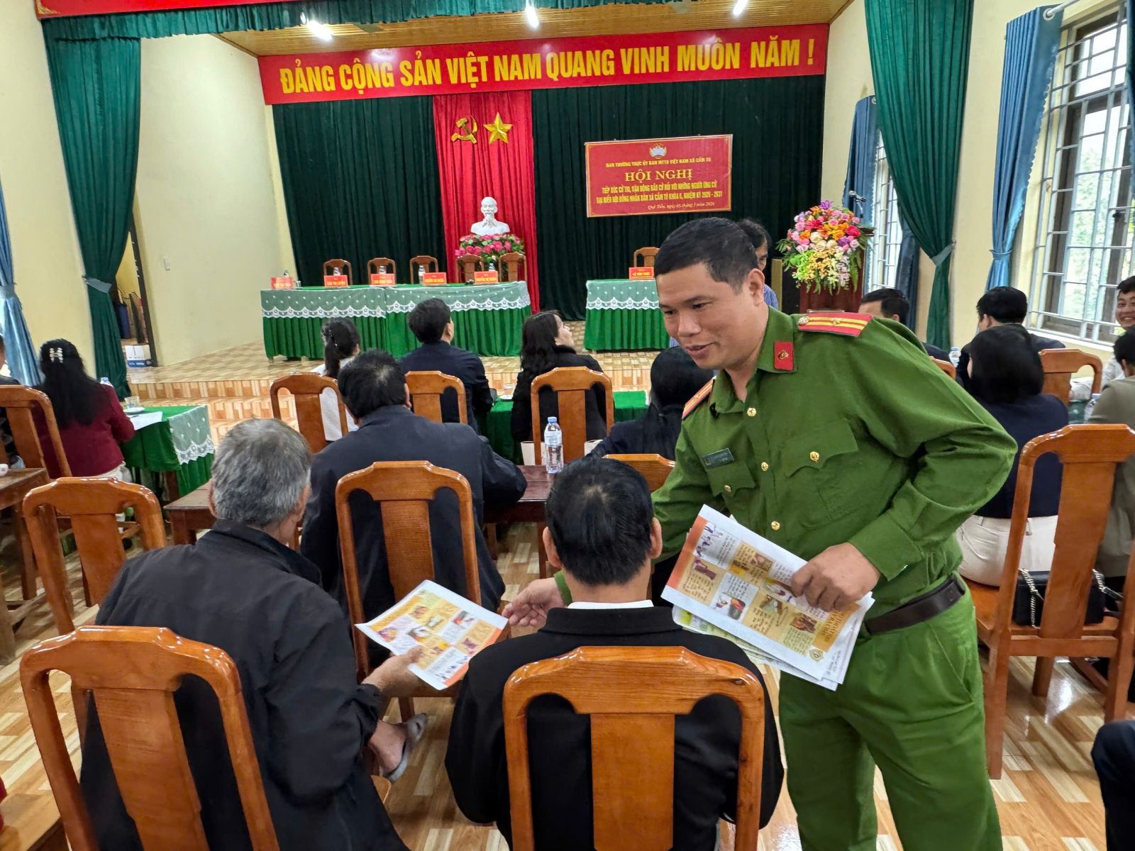 Công an xã Cẩm Tú tổ chức tuyên truyền bảo đảm an toàn PCCC tại các điểm bầu cử trên địa bàn