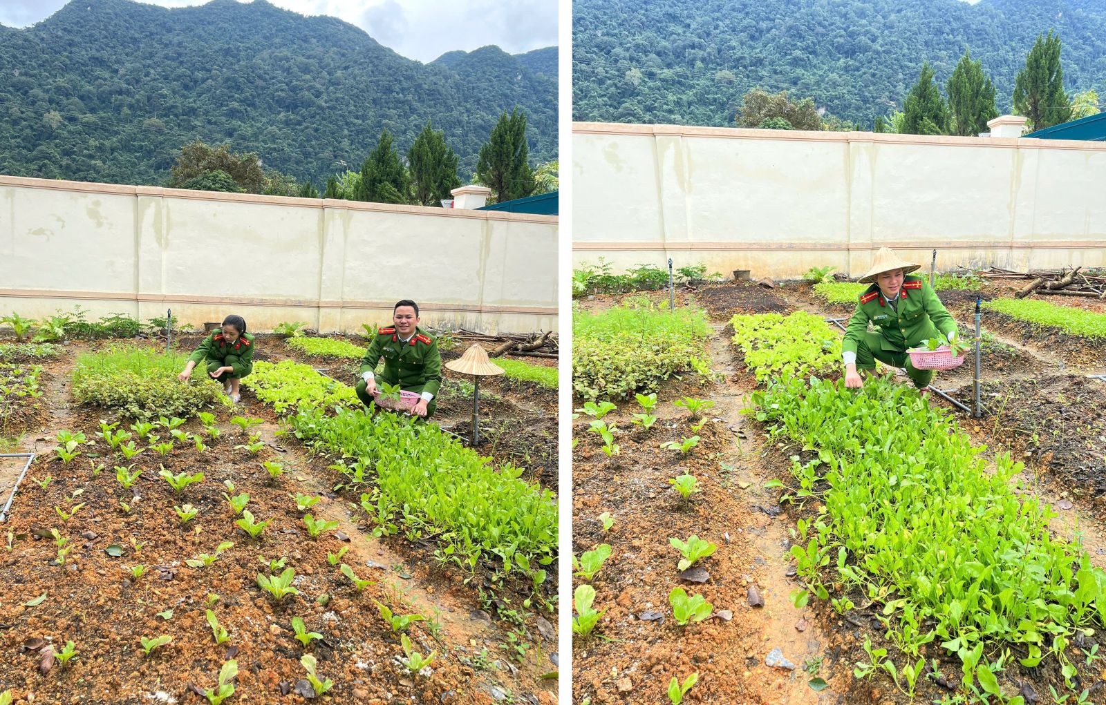 Cán bộ, chiến sĩ Công an xã Hồi Xuân chăm sóc vườn rau sau giờ làm việc
