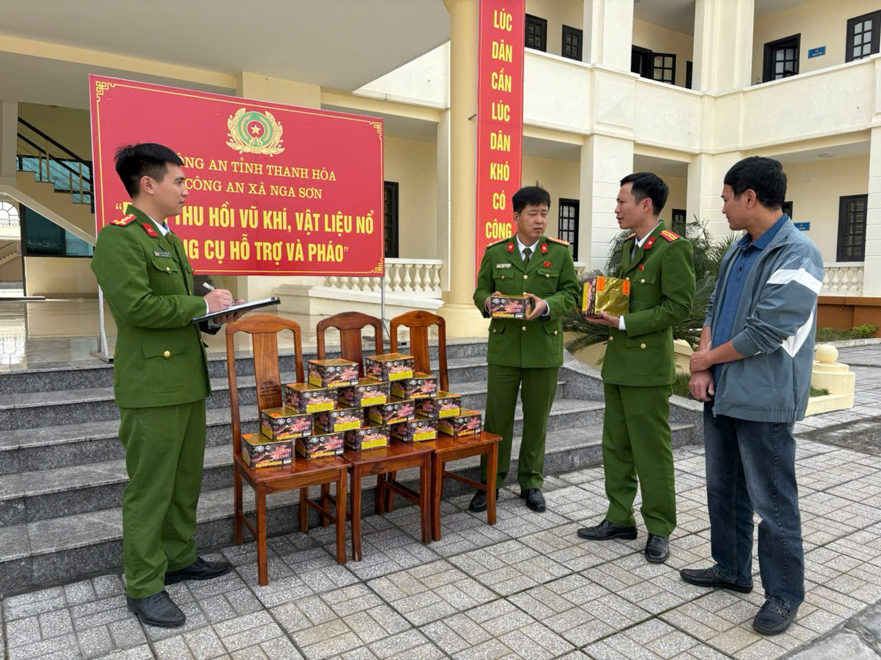 Qua kiểm tra, lực lượng Công an xác định trong thùng có 15 hộp pháo hoa nổ, loại dàn 49, với tổng trọng lượng 30,4kg. Công an xã Nga Sơn đã lập biên bản tiếp nhận, hoàn thiện hồ sơ và tiến hành các thủ tục tiêu hủy theo quy định.