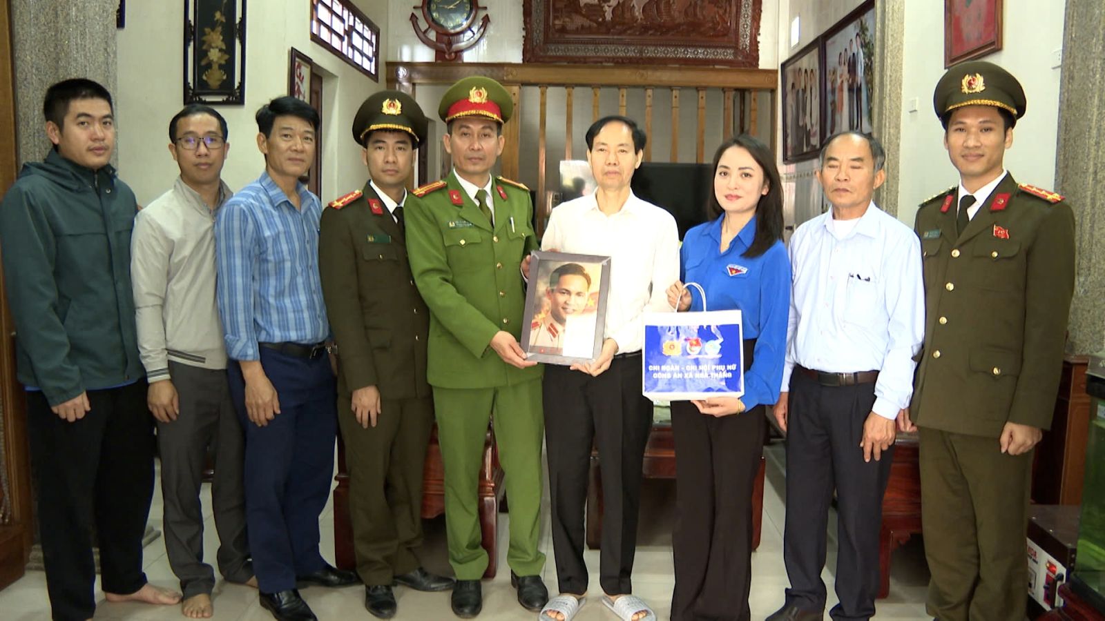 Công an xã Nga Thắng trao tặng ảnh phục chế cho các gia đình liệt sĩ