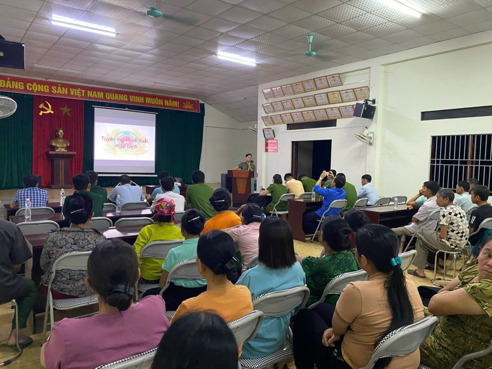 Công an xã Quang Chiểu tuyên truyền phòng, chống xuất nhập cảnh tại nhà văn hoá của các thôn, bản