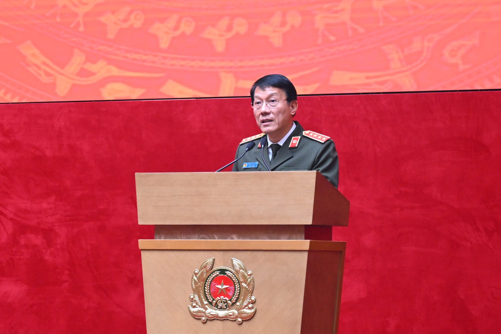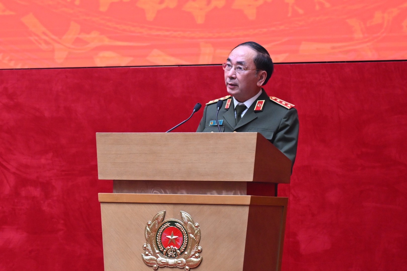 Đại tướng Lương Tam Quang, Ủy viên Bộ Chính trị, Bí thư Đảng ủy CATW, Bộ trưởng Bộ Công an phát biểu tại Hội nghị.