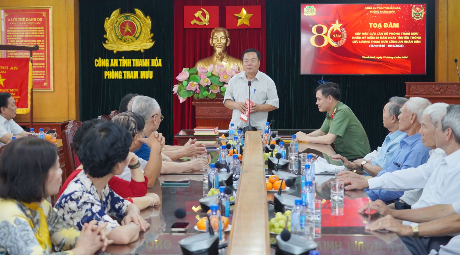 Sáng 07/4, Phòng Tham mưu Công an tỉnh tổ chức buổi tọa đàm, gặp mặt Câu lạc bộ Hội Cựu cán bộ Phòng Tham mưu nhân dịp kỷ niệm 80 năm Ngày truyền thống lực lượng Tham mưu Công an nhân dân (18/4/1946 - 18/4/2026). Đây là dịp đặc biệt để ôn lại truyền thống vẻ vang, tri ân những đóng góp của các thế hệ cán bộ Phòng Tham mưu, đồng thời khẳng định vai trò, vị trí quan trọng của công tác tham mưu trong sự nghiệp bảo vệ an ninh, trật tự trong tình hình mới…
