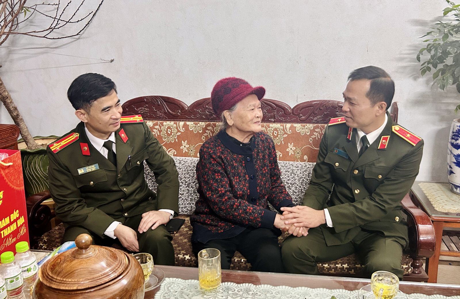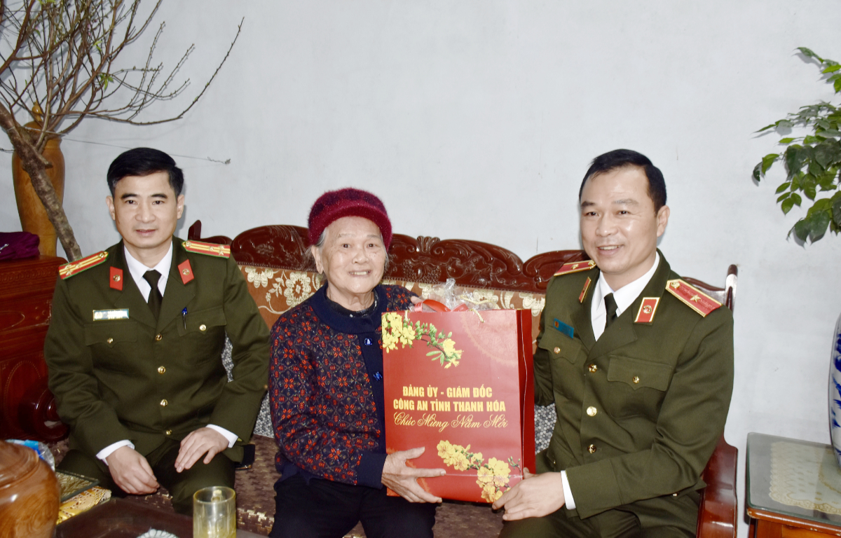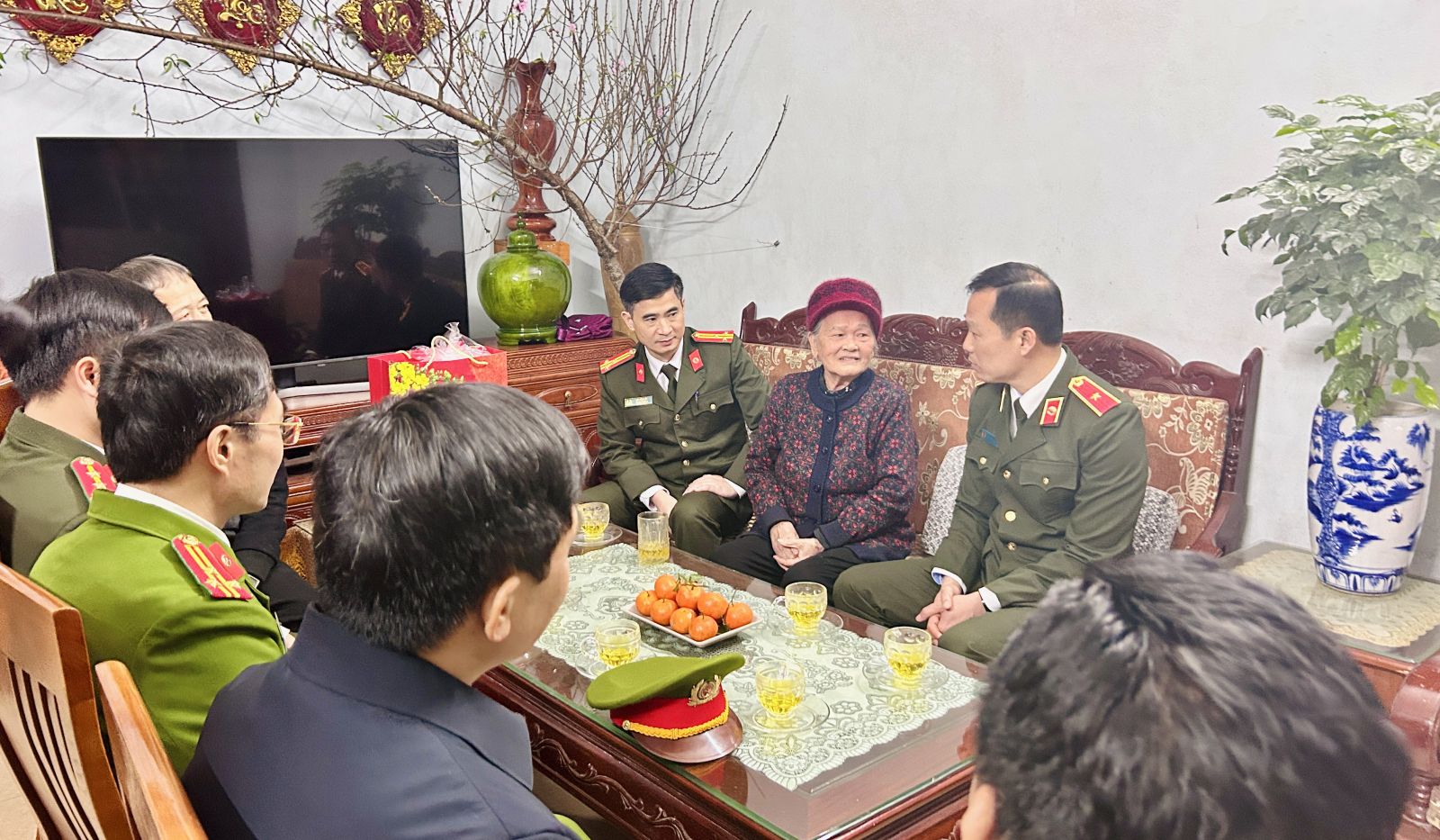 Đồng chí Giám đốc Công an tỉnh đã tặng quà chúc Tết Anh hùng Lực lượng vũ trang Nhân dân Ngô Thị Tuyển
