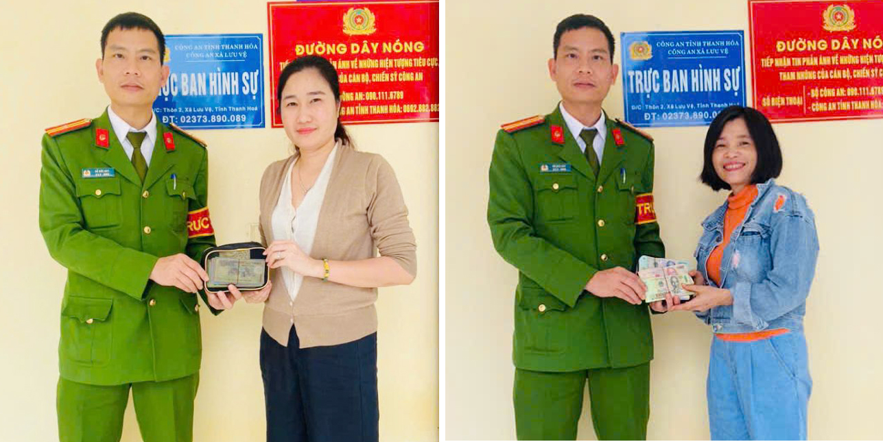Từ thông tin trên các giấy tờ có trong ví kết hợp công tác rà soát địa bàn, Công an xã Lưu Vệ đã xác định được chủ nhân của chiếc ví trên là chị Ngô Thị Thành, sinh năm 1973 trú tại thôn Tân Hưng, xã Lưu Vệ. Sau khi thông báo và tiến hành kiểm tra, đối chiếu các nguồn thông tin, Công an xã Lưu Vệ đã phối hợp với chị Hoàng Thị Nga tổ chức trao trả lại toàn bộ tài sản cho chị Ngô Thị Thành theo quy định.