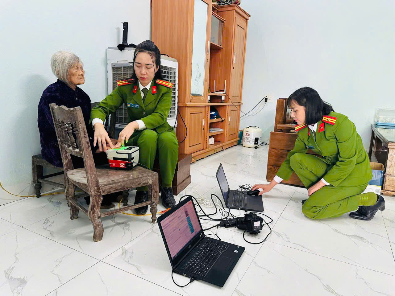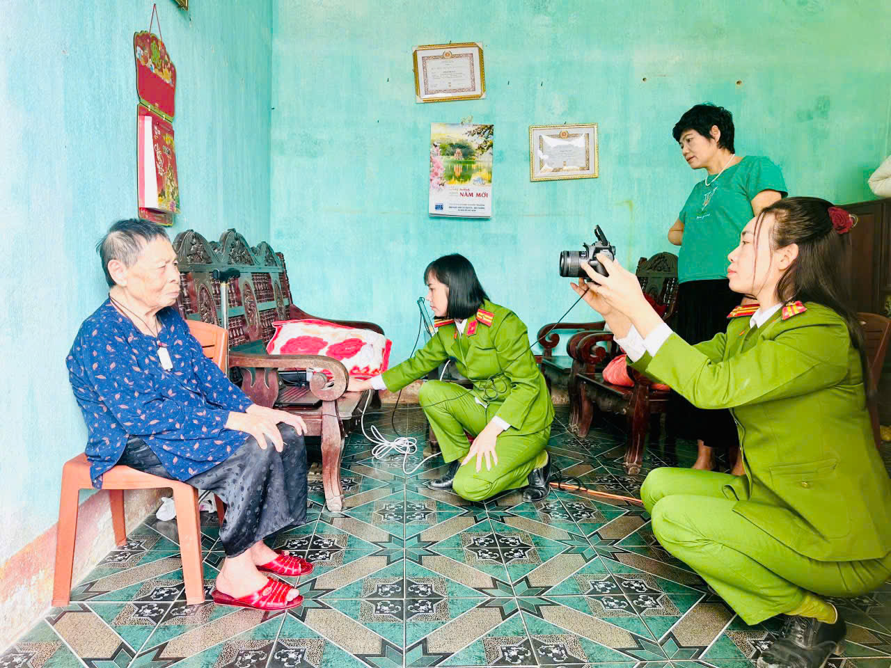 Tại mỗi gia đình, các cán bộ Công an nhẹ nhàng hướng dẫn, ân cần trò chuyện, thực hiện từng bước thu nhận thông tin ngay tại nhà. Không khí làm việc không còn khoảng cách của thủ tục hành chính mà trở nên gần gũi như những cuộc thăm hỏi thân tình cuối năm. Đối với các cụ và gia đình, việc được hỗ trợ tận nơi trong những ngày giáp Tết là niềm xúc động lớn; còn với cán bộ, chiến sĩ Công an xã, đó đơn giản là việc nên làm để người dân được thuận lợi hơn.