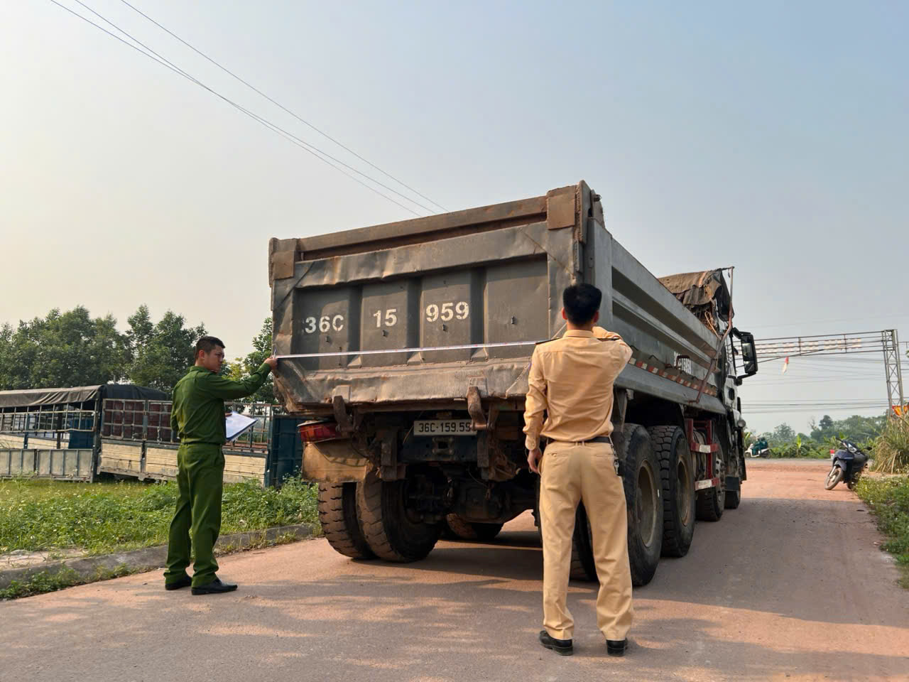 Công an xã Triệu Sơn tổng rà soát xe tải tự đổ, sơ mi rơ moóc tự đổ từ 15 tấn trở lên