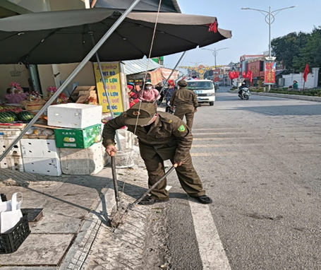 Công an xã Hoằng Hóa ra quân thiết lập lại trật tự đô thị, hành lang, vỉa hè chào mừng Tết Nguyên đán Bính Ngọ năm 2026