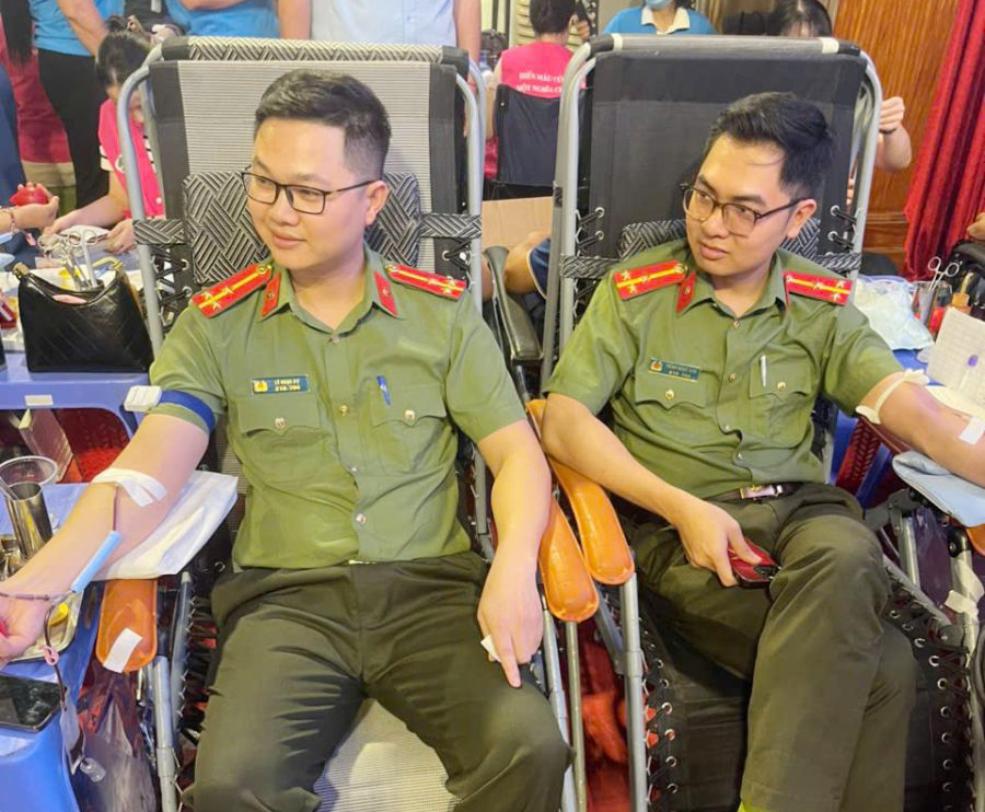 Cán bộ, chiến sĩ Công an xã Hà Trung tích cực tham gia Ngày hội hiến máu tình nguyện
