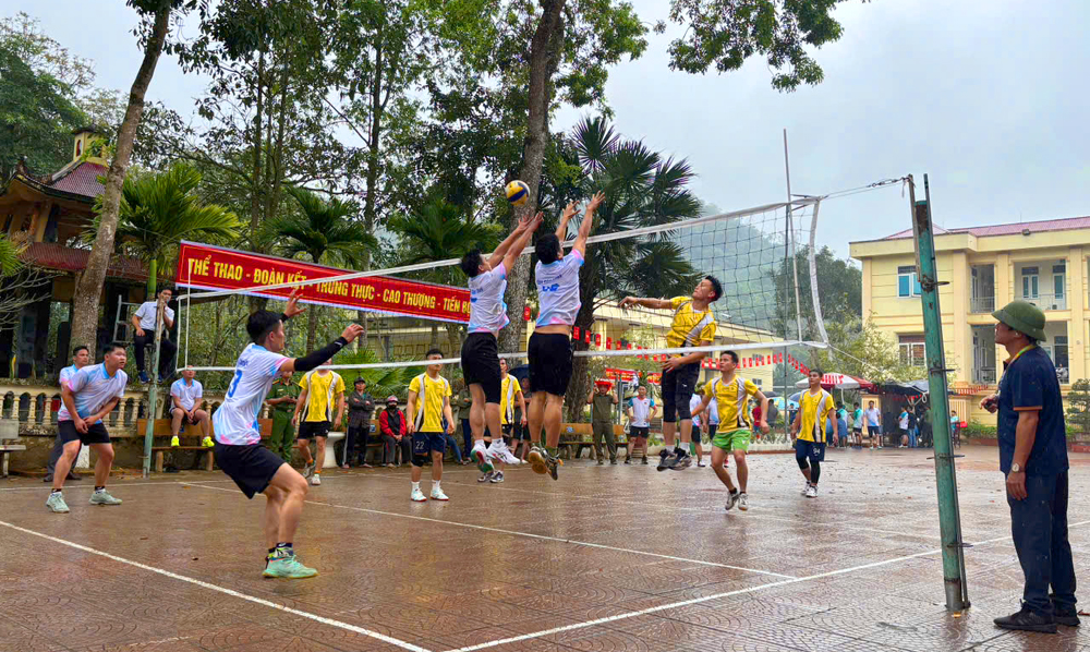 Trọng tâm của ngày khai mạc là các trận thi đấu bóng chuyền da nam. Dù điều kiện thời tiết có mưa, gây ảnh hưởng ít nhiều đến sân bãi, nhưng với tinh thần quyết tâm cao, các vận động viên đã cống hiến cho khán giả những pha bóng kịch tính và đẹp mắt. Sự cổ vũ nồng nhiệt từ phía khán giả đã xua tan cái lạnh, làm nóng bầu không khí thi đấu tại sân vận động xã Cẩm Thạch.