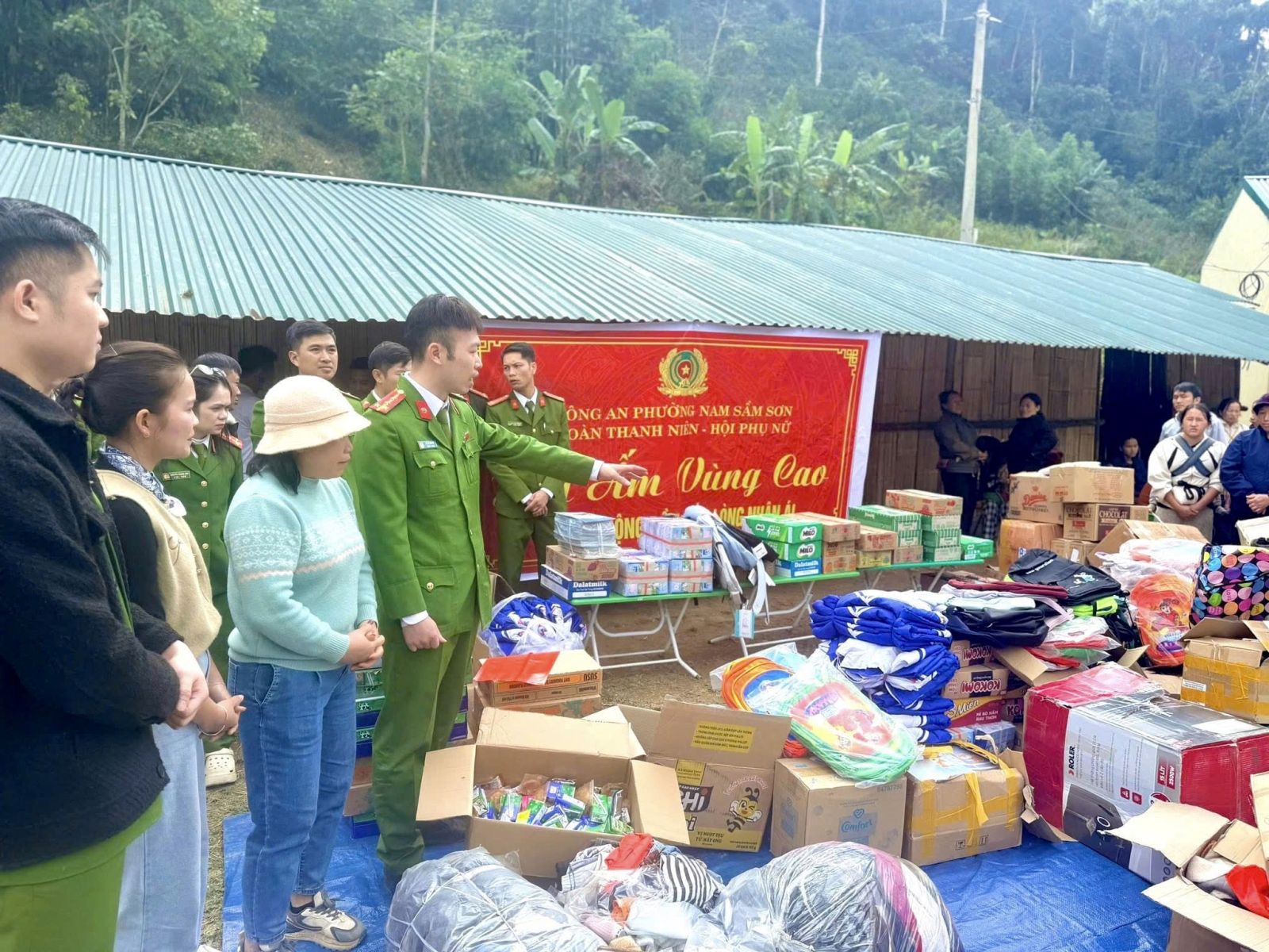 Thấu hiểu những khó khăn ấy, Đoàn Thanh niên và Hội Phụ nữ Công an phường Nam Sầm Sơn đã phát động và kêu gọi các tổ chức, cá nhân trên địa bàn phường và cán bộ, chiến sĩ tham gia ủng hộ chương trình “Hơi ấm vùng cao”. Bằng tấm lòng chân thành và sự sẻ chia sâu sắc, chỉ trong thời gian ngắn phát động, gần 2 tấn hàng hoá, gồm: quần áo, gạo, sữa, bánh kẹo, sách vở, đồ dùng học tập và các nhu yếu phẩm thiết yếu khác… đã được quyên góp và sẵn sàng cho hành trình sẻ chia với bà con vùng núi cao Sơn Thuỷ.