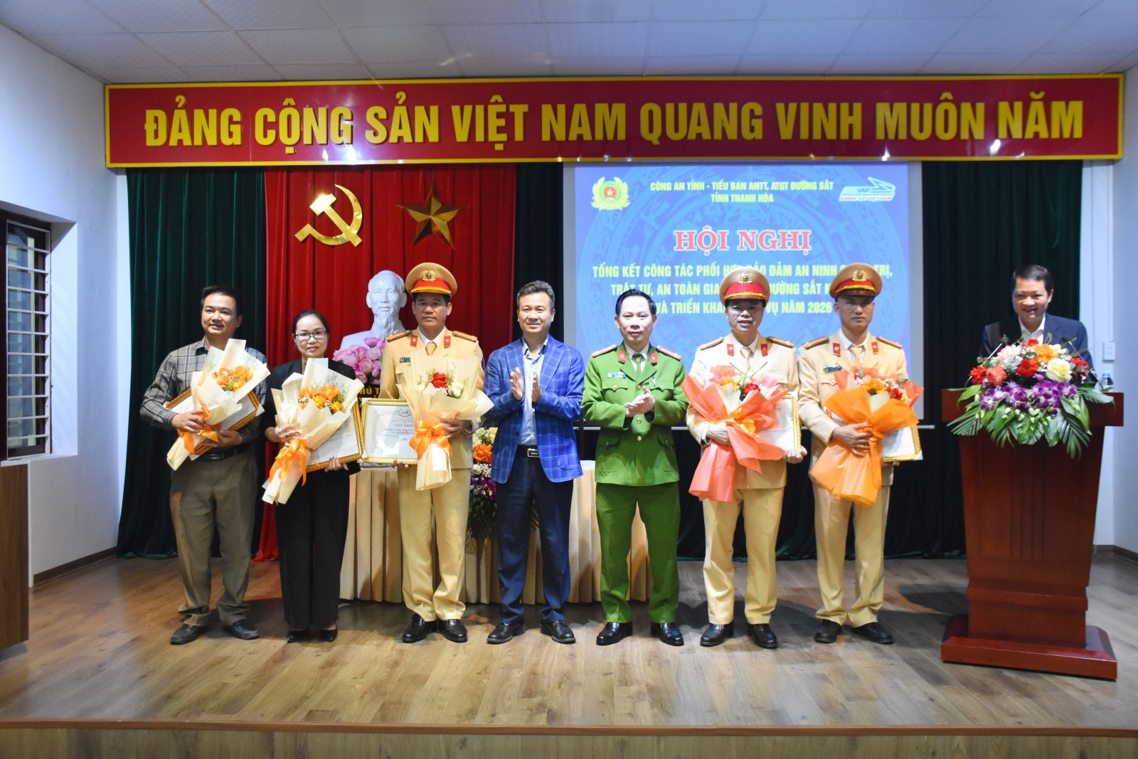 Để tiếp tục phát huy những kết quả đạt được, tại Hội nghị, Công an tỉnh Thanh Hóa và Tiểu ban ANTT, ATGT đường sắt khu vực Thanh Hóa đã ký kết Quy chế phối hợp bảo đảm ANTT, ATGT đường sắt năm 2026. Nhân dịp này, Tổng Công ty Đường sắt Việt Nam đã trao Giấy khen cho 5 tập thể và 7 cá nhân có thành tích xuất sắc trong công tác bảo đảm ANTT, ATGT đường sắt năm 2025.