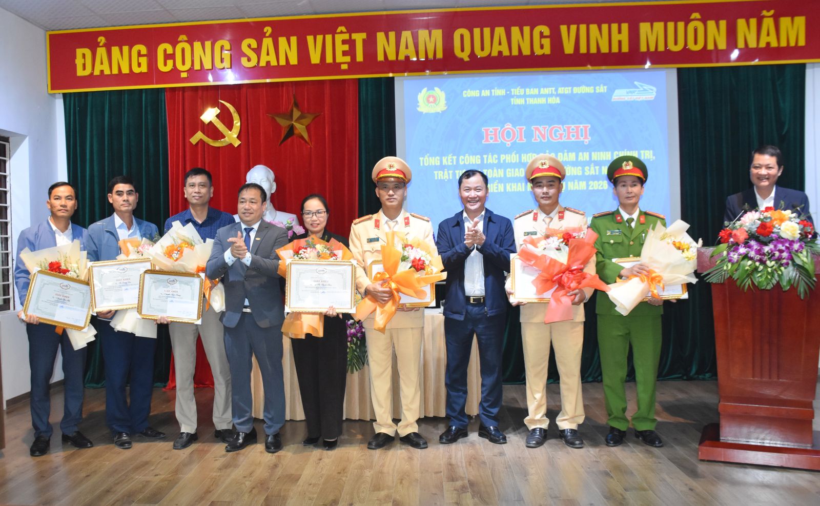 Thanh Hóa hiện có 103 km đường sắt Thống Nhất đi qua, với 70 đường ngang và 72 lối đi tự mở. Để bảo đảm ANTT và ATGT đường sắt, trong năm 2025, Tiểu ban ANTT, ATGT đường sắt khu vực Thanh Hóa đã triển khai nghiêm túc, hiệu quả quy chế phối hợp với lực lượng Công an và chính quyền các địa phương có tuyến đường sắt đi qua. Đặc biệt, sau khi sáp nhập địa giới hành chính, Công an tỉnh và Tiểu ban ANTT, ATGT đường sắt đã chủ động phối hợp, trao đổi, cập nhật đầu mối liên hệ, bảo đảm công tác phối hợp được duy trì thông suốt và hiệu quả. Căn cứ chức năng, nhiệm vụ được giao, lãnh đạo hai ngành đã lãnh đạo, chỉ đạo các lực lượng liên quan thường xuyên phối hợp trao đổi thông tin, nắm chắc tình hình, chủ động phòng ngừa, đấu tranh với các loại tội phạm trên tuyến đường sắt và tại các nhà ga. Đồng thời, triển khai hiệu quả các quy định của Nhà nước, Bộ Xây dựng và ngành đường sắt, Luật Đường sắt cùng các thông tư, nghị định liên quan đến công tác bảo đảm ATGT đường sắt. Các phương án bảo đảm an ninh chính trị nội bộ, an ninh kinh tế và trật tự ATGT đường sắt được xây dựng, bổ sung sát với thực tiễn. Phòng Cảnh sát giao thông và Công an các xã, phường có tuyến đường sắt đi qua đã phối hợp với tổ chức liên hiệp lao động tại các khu ga xử lý nhanh chóng, đúng pháp luật các vụ tai nạn, sự cố, nhất là những vụ việc nghiêm trọng và đặc biệt nghiêm trọng, góp phần giảm thiểu thiệt hại về người, tài sản và hạn chế ách tắc giao thông đường sắt.
