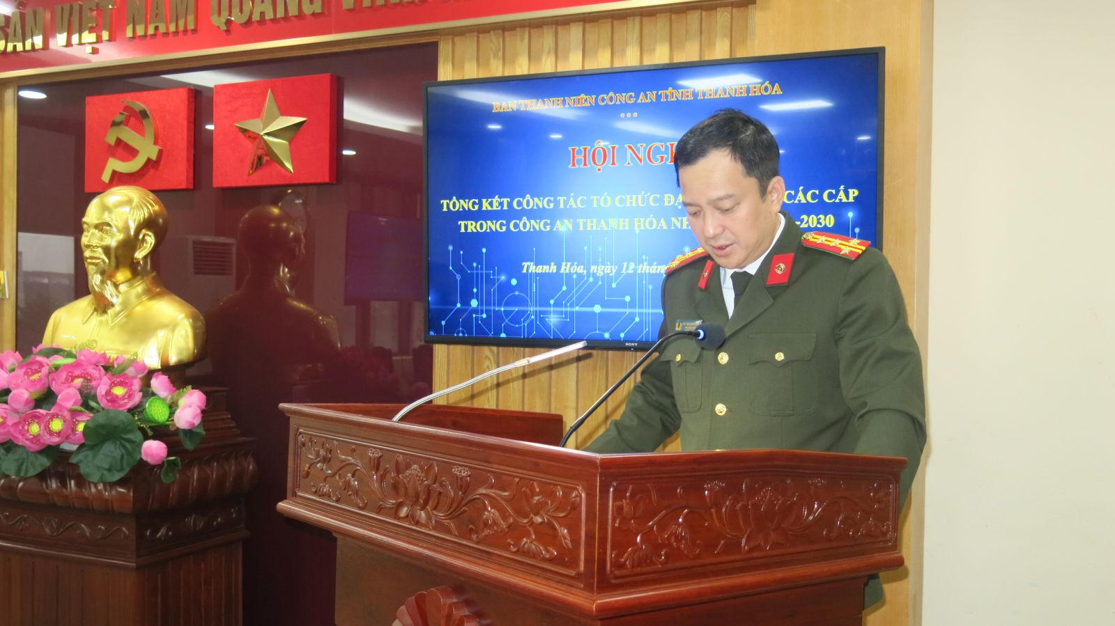 Tại Hội nghị, Ban Thanh niên Công an tỉnh đã báo cáo kết quả tổ chức Đại hội Đoàn các cấp trong Công an Thanh Hoá; quán triệt các mục tiêu nhiệm vụ, giải pháp mà Nghị quyết Đại hội đại biểu Đoàn TNCS Hồ Chí Minh Công an tỉnh lần thứ XXI, nhiệm kỳ 2025 - 2030 đã đề ra.
