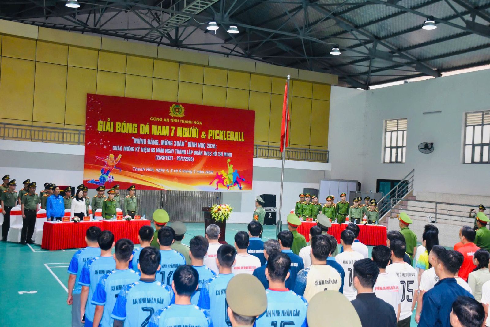 Trong không khí thi đua sôi nổi lập thành tích chào mừng bầu cử đại biểu Quốc hội khoá XVI và Hội đồng nhân dân các cấp nhiệm kỳ 2026 – 2031; chào mừng kỷ niệm 95 năm Ngày thành lập Đoàn TNCS Hồ Chí Minh (26/3/1931 – 26/3/2026), sáng 04/3/2026, Công an tỉnh Thanh Hoá tổ chức Lễ khai mạc Giải bóng đá nam 7 người và Pickleball trong toàn lực lượng.