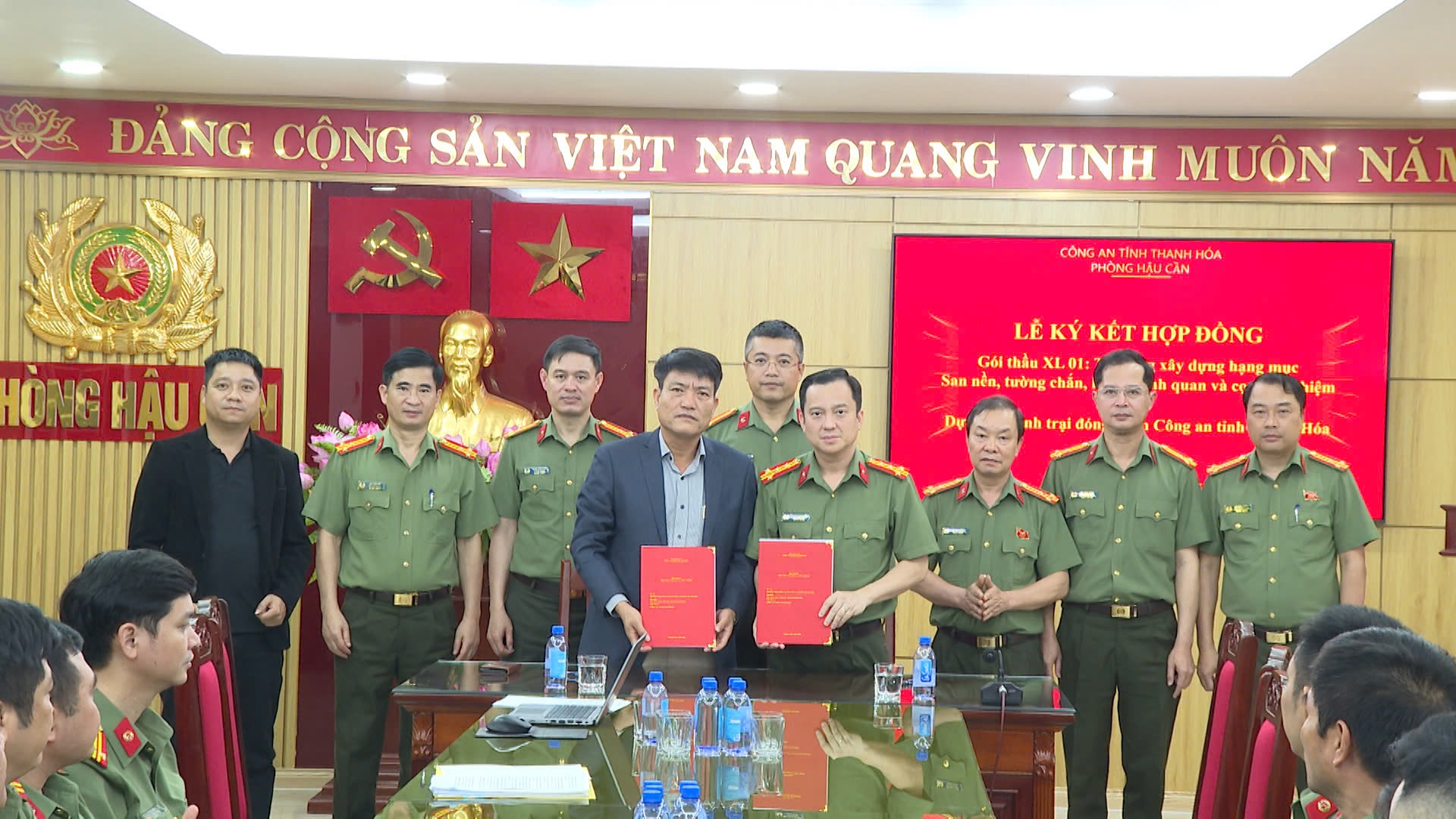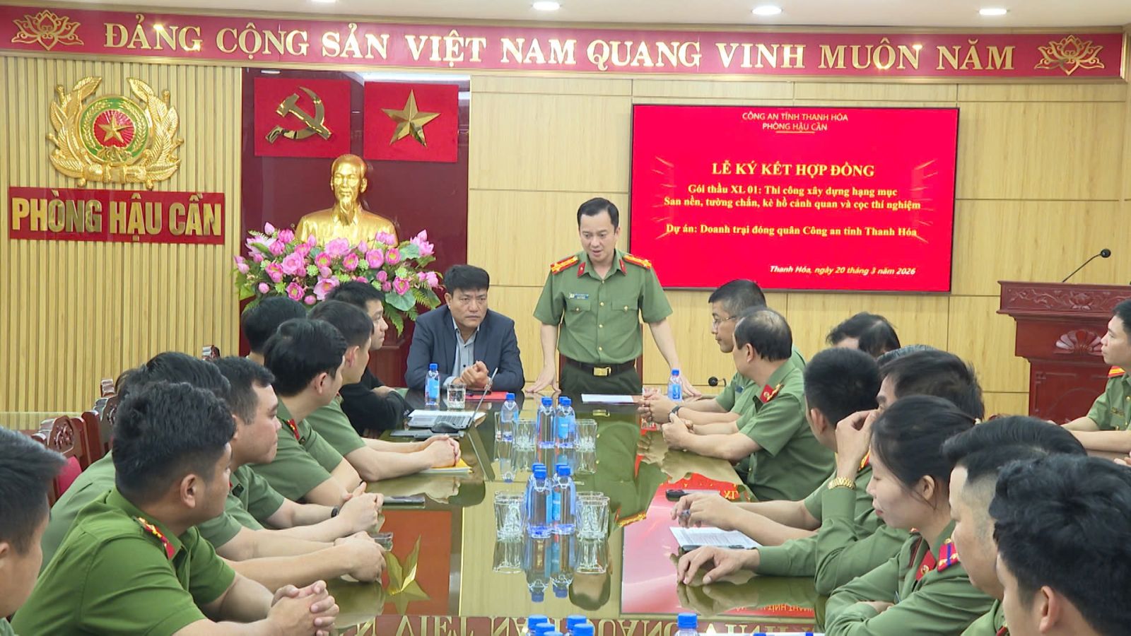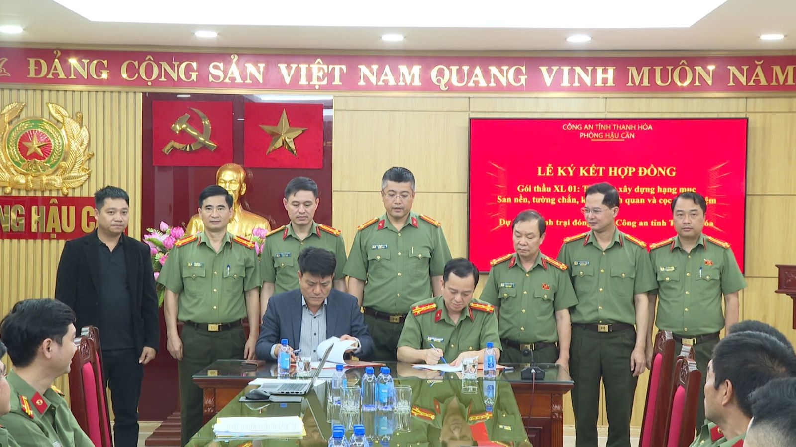 Chiều 20/3/2026, Công an tỉnh và Công ty Cổ phần đầu tư và xây dựng Đức Chính tổ chức Lễ ký kết hợp đồng thi công gói thầu XL01 xây dựng hạng mục san nền, tường chắn, kè hồ cảnh quan và cọc thí nghiệm Dự án doanh trại đóng quân Công an tỉnh Thanh Hoá. Đại tá Trần Thái Quang Hoàng, Phó Giám đốc Công an tỉnh và ông Nguyễn Trọng Dũng, Giám đốc Công ty Cổ phần đầu tư và xây dựng Đức Chính - đại diện nhà thầu cùng tham dự Lễ ký kết…