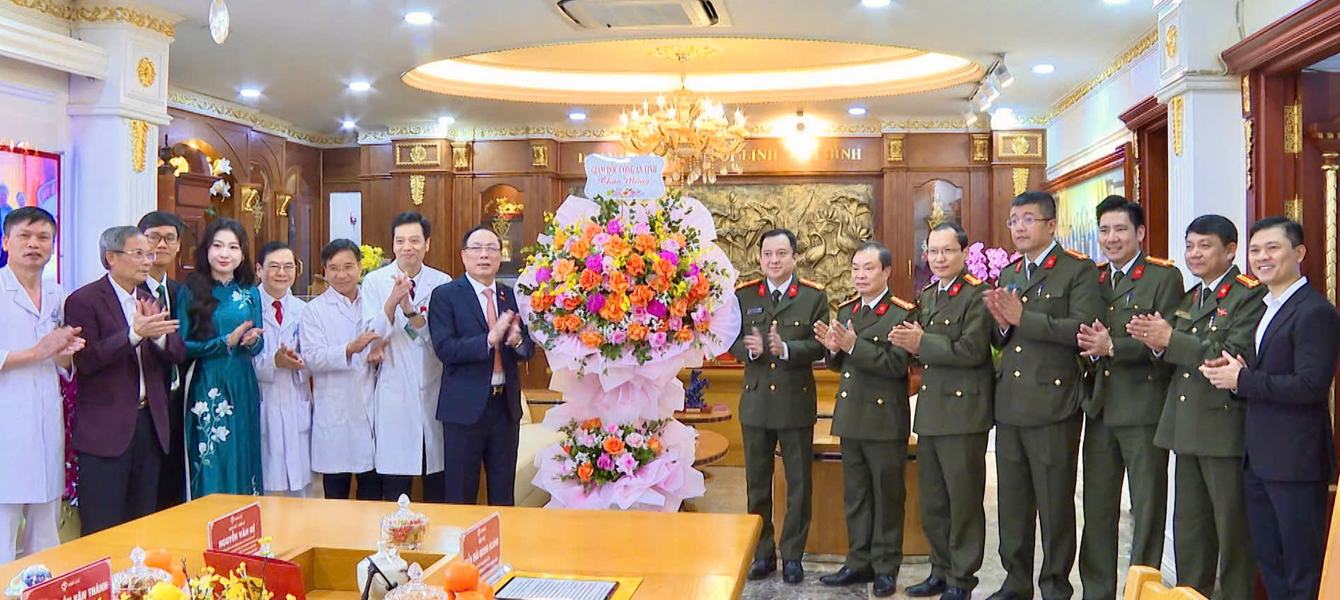 Tặng hoa chúc mừng đội ngũ y, bác sĩ, cán bộ, chiến sĩ, nhân viên y tế Bệnh viện Công an tỉnh Thanh Hóa