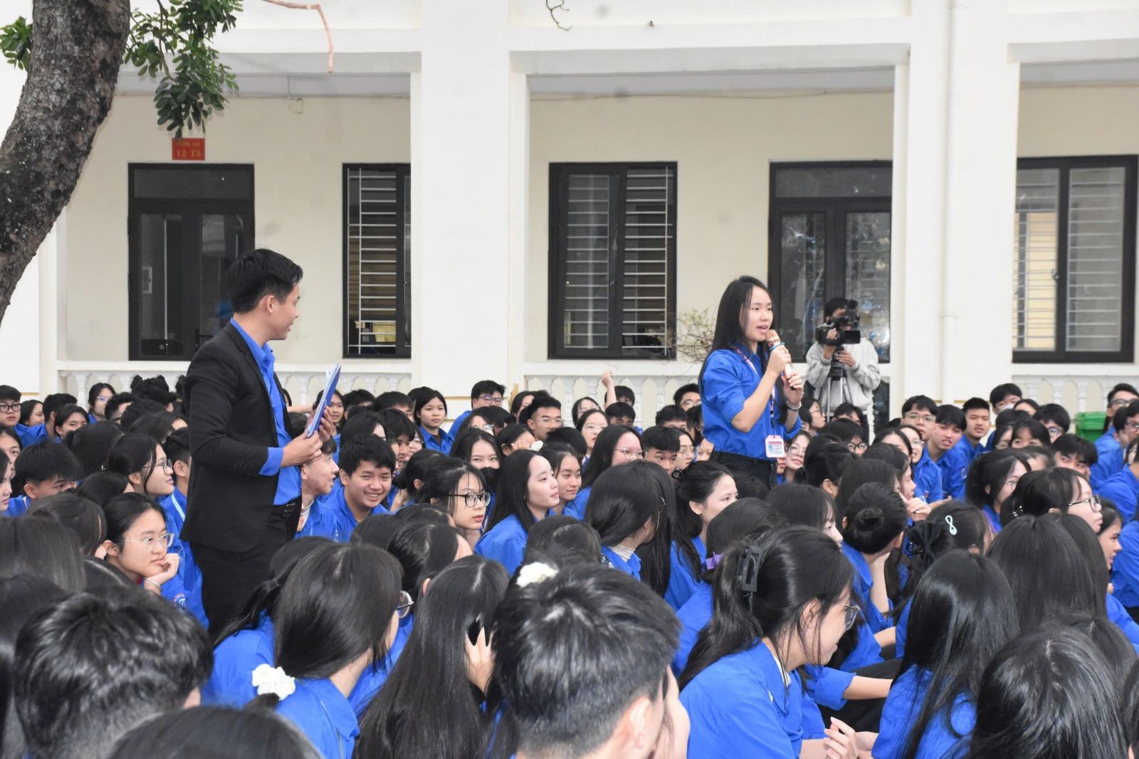 Học sinh trường THPT Quảng Xương 1 nhiệt tình tham gia phần giao lưu hỏi - đáp, trao đổi kiến thức,
