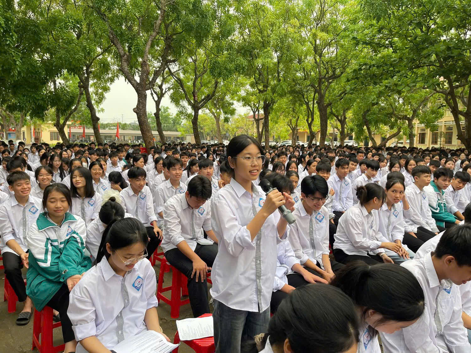 Buổi tuyên truyền đã thu hút sự quan tâm của các em học sinh hỏi đáp về các biện pháp bảo vệ an toàn trên không gian mạng