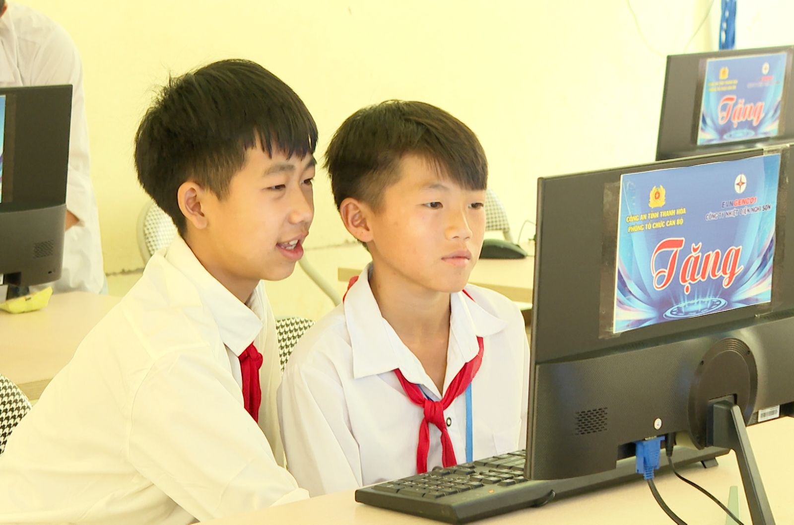 Xúc động trước tình cảm mà Đoàn công tác dành cho nhà trường, thầy Trịnh Xuân Tâm, Hiệu trưởng trường Trung học cơ sở Nhi Sơn cho biết: Trường chúng tôi hiện có 269 học sinh với 8 lớp. Trong những năm qua, mặc dù đã được Nhà nước quan tâm đầu tư về cơ sở vật chất, tuy nhiên các điều kiện dạy và học của Nhà trường, nhất là về Tin học vẫn còn hạn chế. Việc Phòng Tổ chức cán bộ Công an tỉnh và Công ty Nhiệt điện Nghi Sơn trao tặng cho nhà trường 10 bộ máy tính, sẽ giúp nhà trường cải thiện điều kiện giảng dạy, tạo cơ hội để học sinh tiếp cận công nghệ, từng bước thu hẹp khoảng cách giữa miền núi và miền xuôi.