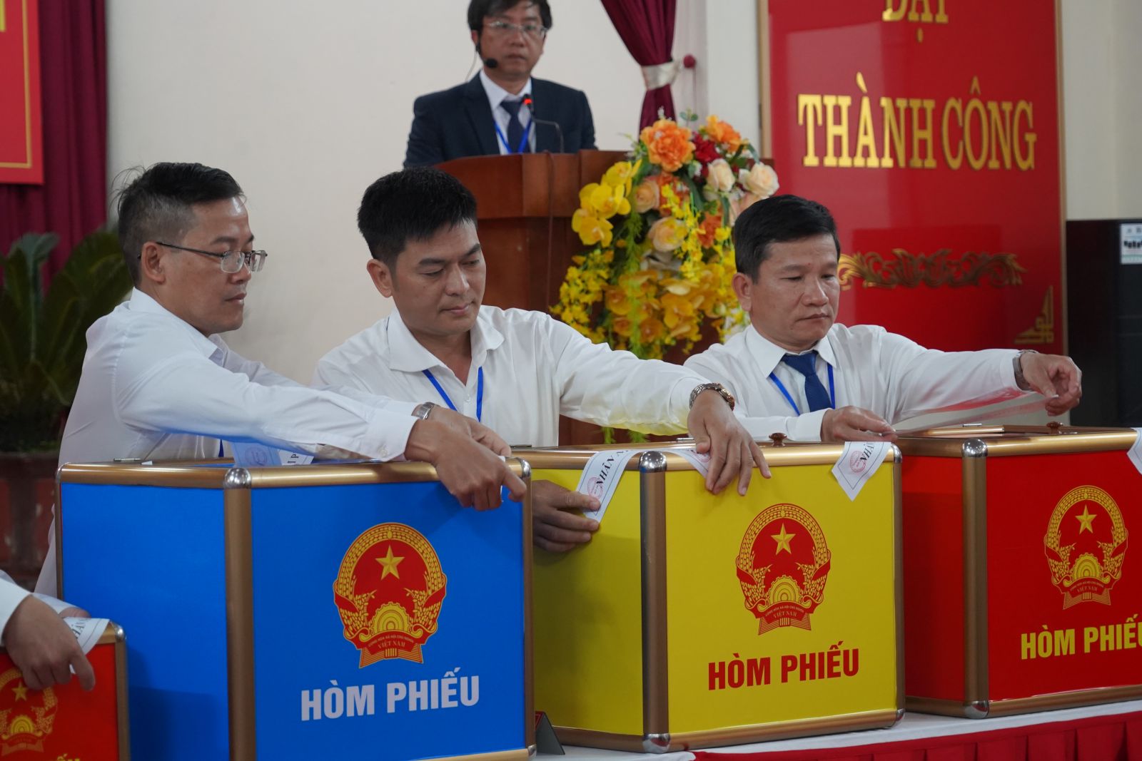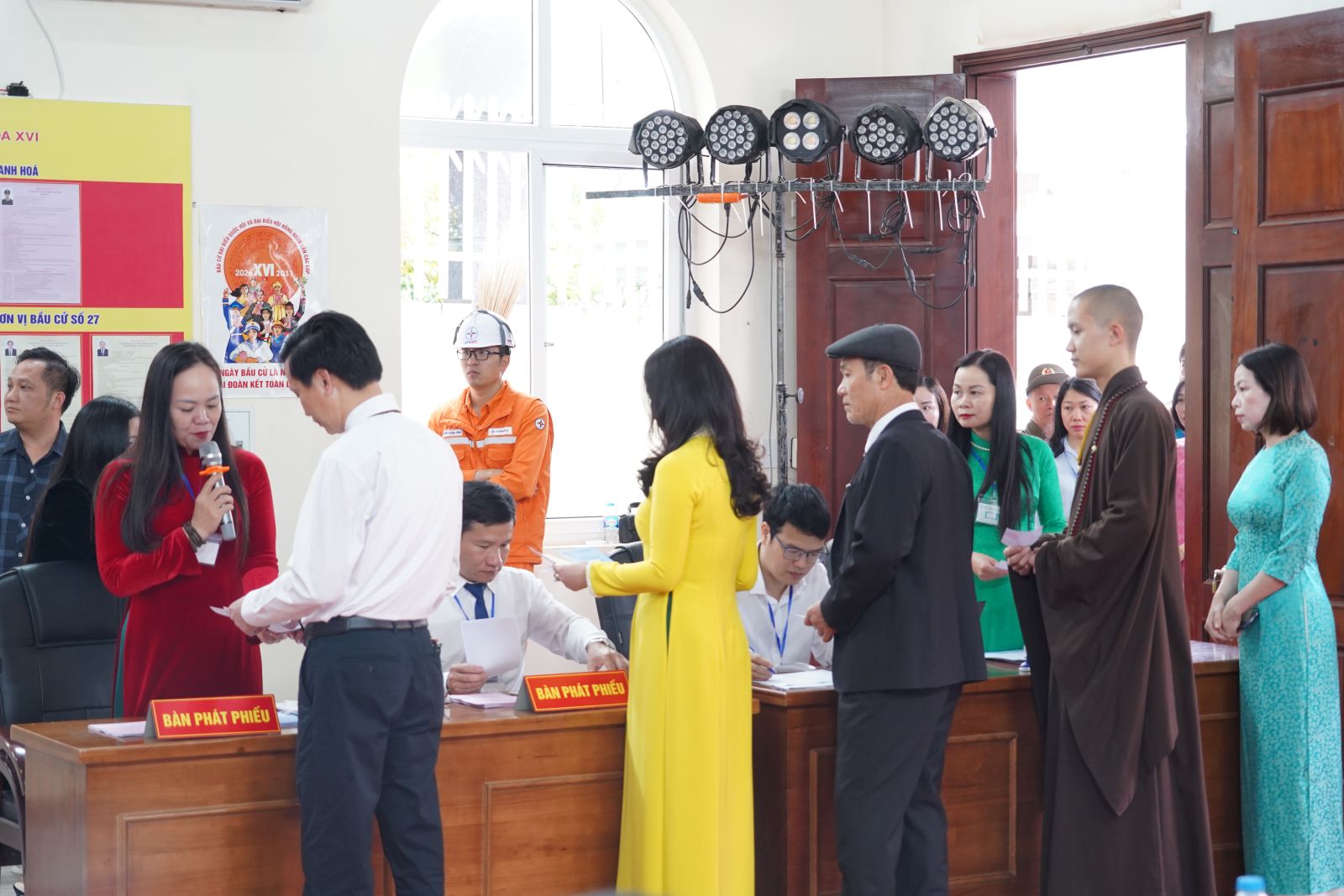 Sau khi kiểm tra và niêm phong hòm phiếu, các thành viên Tổ bầu cử thực hiện quy trình phát phiếu bầu, hướng dẫn cách thức bỏ phiếu theo đúng quy định. Trong suốt quá trình vận hành mẫu, việc hướng dẫn cử tri được thực hiện rõ ràng, đảm bảo trật tự, khoa học và đúng quy trình. Các cử tri tham gia vận hành mẫu lần lượt nhận phiếu bầu, vào khu vực viết phiếu kín và thực hiện quyền bỏ phiếu tại hòm phiếu theo quy định. Sau phần bỏ phiếu, Tổ bầu cử tiến hành các bước kiểm phiếu và lập biên bản kiểm phiếu.