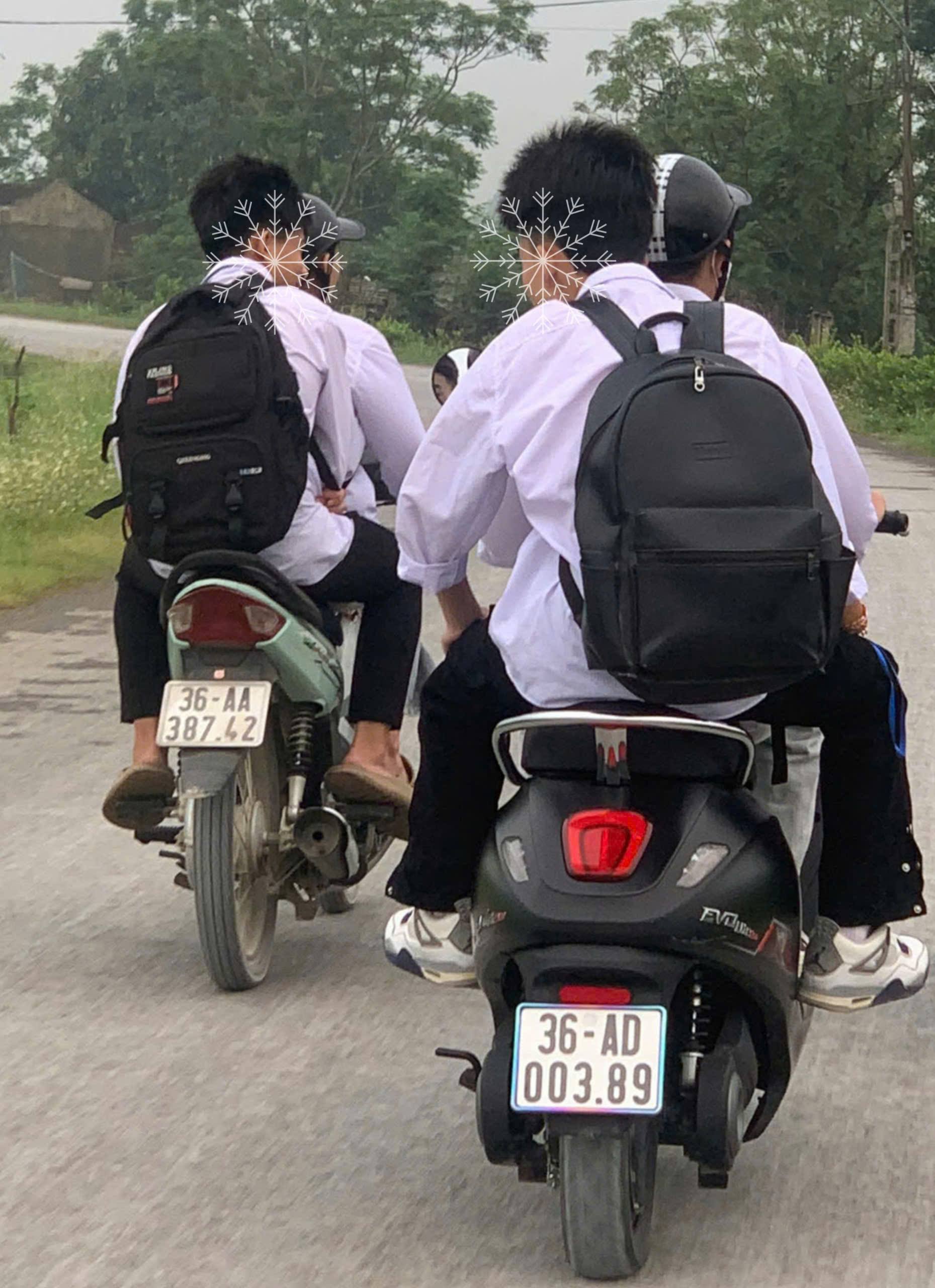 Đối với xe máy điện biển kiểm soát 36AD-003.89, người điều khiển phương tiện là N.S.P, sinh ngày 11/7/2010, trú tại xã Thiệu Hoá, tỉnh Thanh Hoá, vi phạm: chở người ngồi trên xe gắn máy không đội mũ bảo hiểm khi tham gia giao thông đường bộ; người từ đủ 14 tuổi đến dưới 16 tuổi điều khiển xe gắn máy, quy định tại điểm i, khoản 2, Điều 7; khoản 1, Điều 18, Nghị định 168/2024/NĐ-CP ngày 26/12/2024 của Chính phủ. Người ngồi sau xe là N.Đ.K, sinh ngày 29/6/2010, trú tại xã Thiệu Hoá, tỉnh Thanh Hoá, vi phạm: người được chở trên xe gắn máy không đội mũ bảo hiểm khi tham gia giao thông đường bộ, quy định tại điểm b, khoản 5, Điều 12, Nghị định 168/2024/NĐ-CP ngày 26/12/2024 của Chính phủ.