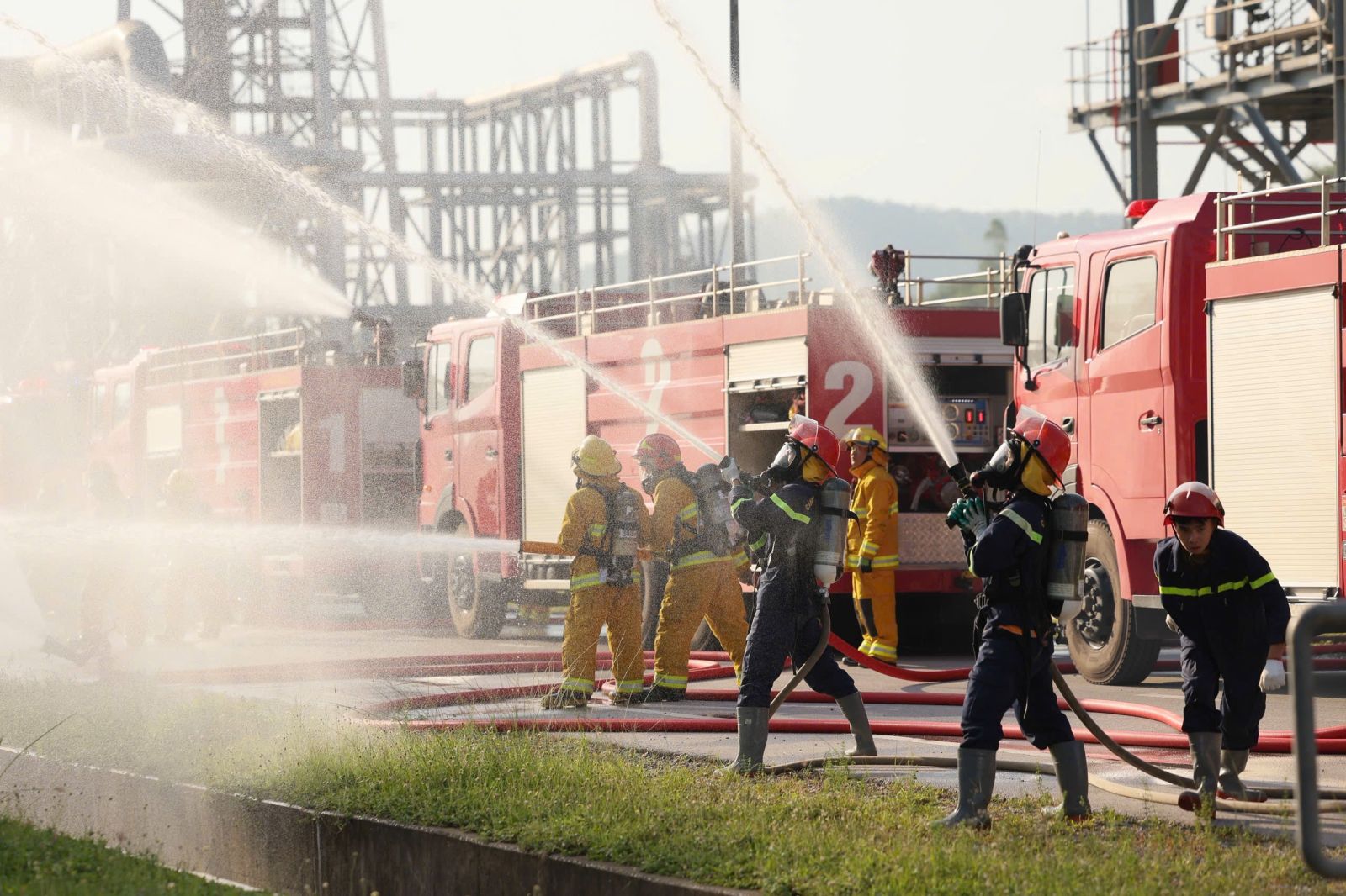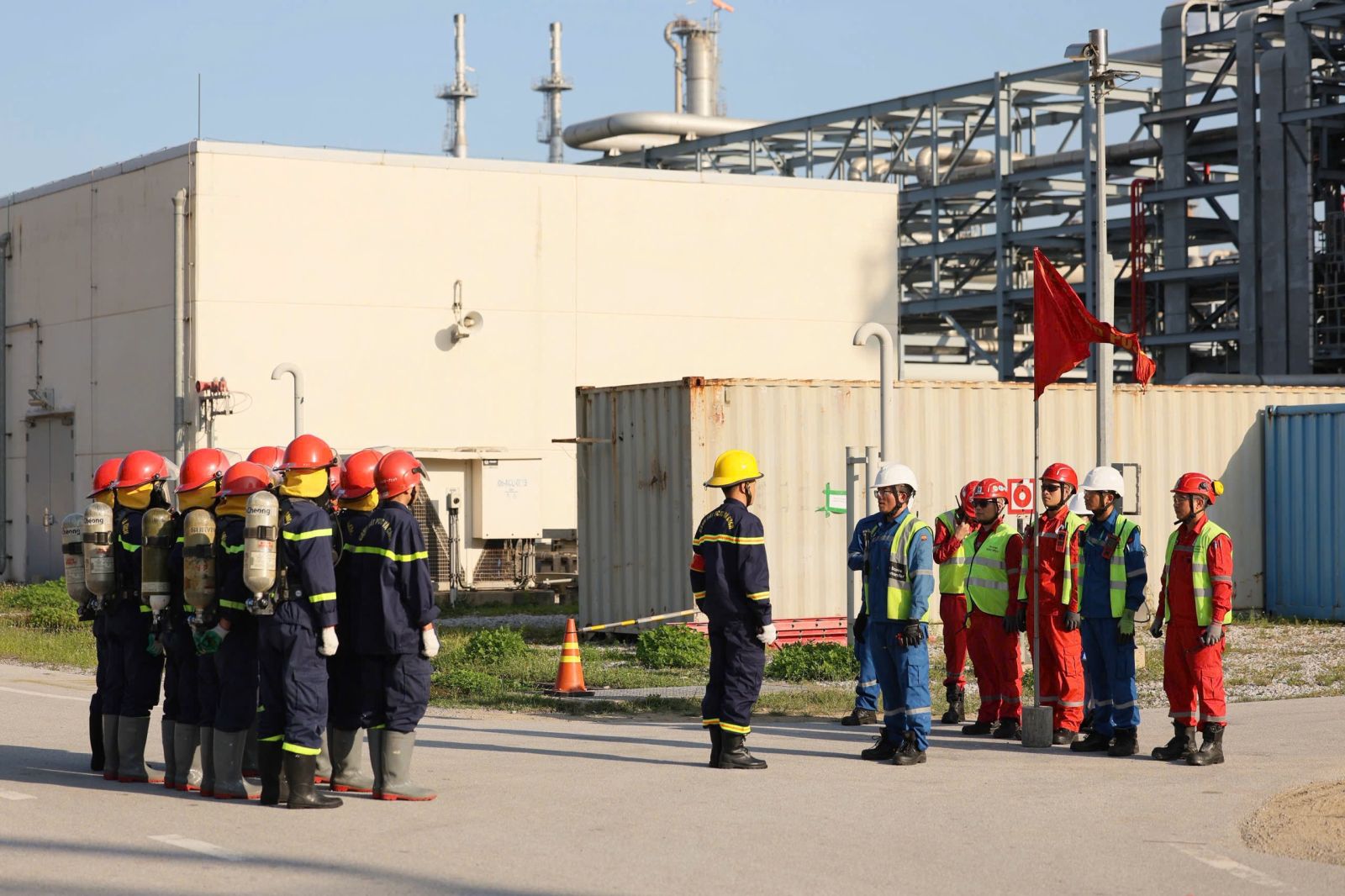 Một số hình ảnh thực tập phương án chữa cháy và cứu nạn, cứu hộ tại Công ty TNHH Lọc hóa dầu Nghi Sơn