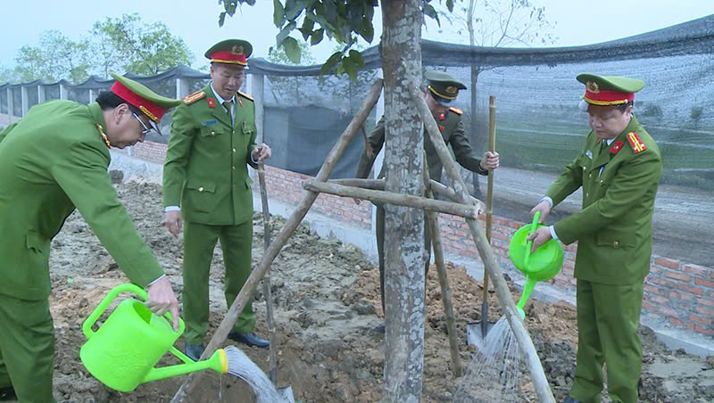 Ngay sau Lễ phát động, Thượng tá Kim Duy Cương, Phó Giám đốc Công an tỉnh cùng Ban Giám thị và cán bộ chiến sĩ Trại tạm giam đã tham gia trồng mới cây xanh các loại tại doanh trại mới đang trong quá trình xây dựng.