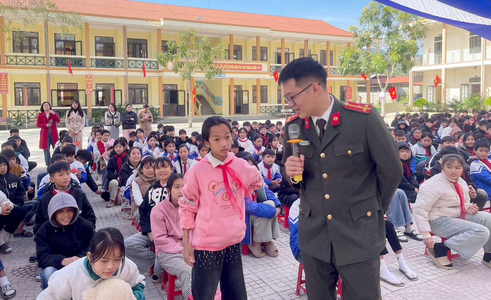 Nhằm nâng cao nhận thức pháp luật và cụ thể hoá các mục tiêu, nhiệm vụ của Đề án “Quản lý, cảm hoá, giáo dục, phòng ngừa và xử lý thanh thiếu niên hư vi phạm pháp luật trên địa bàn tỉnh Thanh Hoá, giai đoạn 2025 - 2030, sáng 28/11/2025, Công an xã Tân Thành phối hợp với Ban Giám hiệu trường Phổ thông dân tộc bán trú THCS Luận Khê tổ chức buổi sinh hoạt ngoại khoá với chủ đề "Truyền thông phòng, chống bạo lực học đường và tuyên truyền pháp luật cho học sinh" cho hơn 450 cán bộ, giáo viên và học sinh nhà trường.