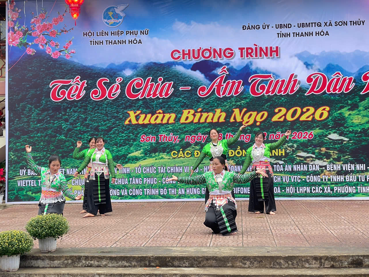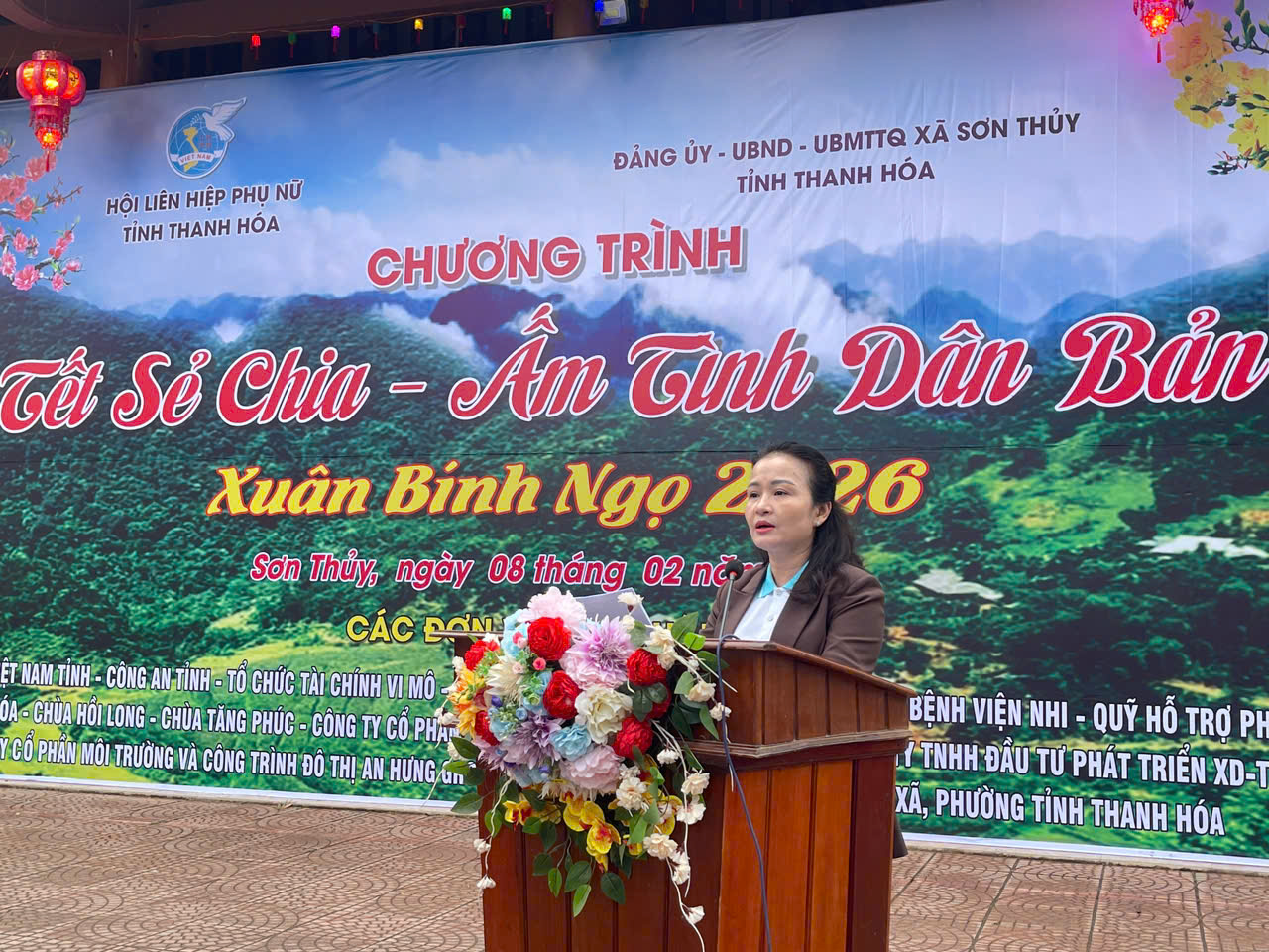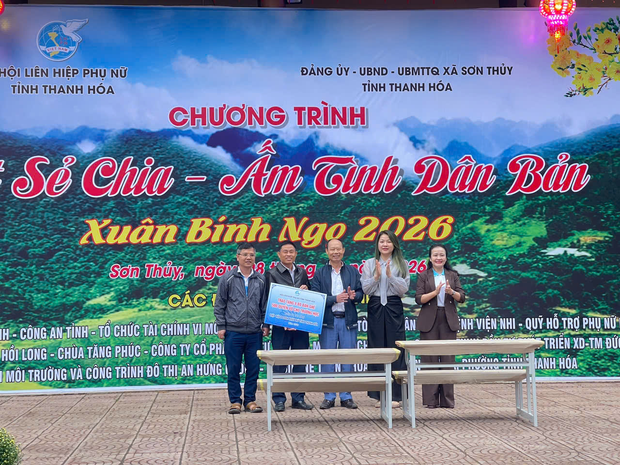 Cũng trong dịp này, tại bản Chung Sơn, Hội LHPN tỉnh phối hợp với xã Sơn Thuỷ và các đơn vị đồng hành tổ chức Chương trình “Tết sẻ chia – Ấm tình dân bản” Xuân Bính Ngọ 2026. Trong không khí ấm áp những ngày giáp Tết, chương trình đã diễn ra với nhiều hoạt động thiết thực, ý nghĩa, như: trao 2 mô hình sinh kế cho hội viên, phụ nữ xã Sơn Thủy và xã Tam Thanh trị giá 100 triệu đồng; trao biển biểu trưng 100 suất quà cho 5 xã: Sơn Điện, Tam Lư, Trung Hạ, Sơn Điện, Mường Mìn; tặng trang thiết bị dạy học, 200 chiếc áo ấm cho học sinh xã Sơn Thuỷ; tặng hàng trăm suất quà cho hội viên, phụ nữ và trẻ em có hoàn cảnh khó khăn các xã Sơn Thủy, Na Mèo, Mường Mìn, gia đình có công với cách mạng và người có uy tín trong cộng đồng, giáo viên, cán bộ, công chức, các cơ quan đơn vị trên địa bàn xã.