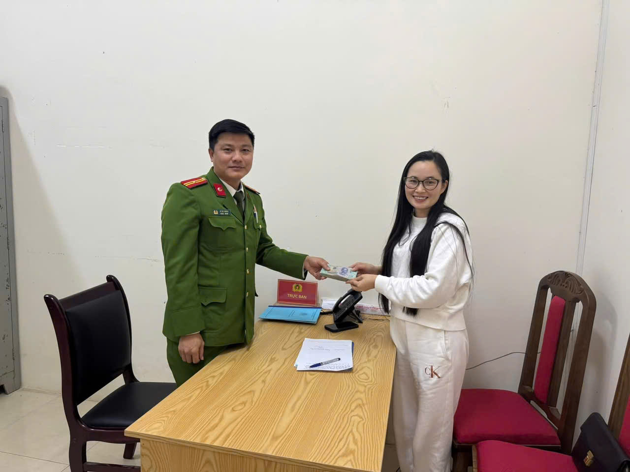 Nhận lại số tiền bị mất, chị Hợp không giấu được niềm xúc động, bày tỏ lời cảm ơn sâu sắc tới anh Trần Văn An và Công an phường Đông Quang với tinh thần trách nhiệm, sự tận tâm trong công việc.
