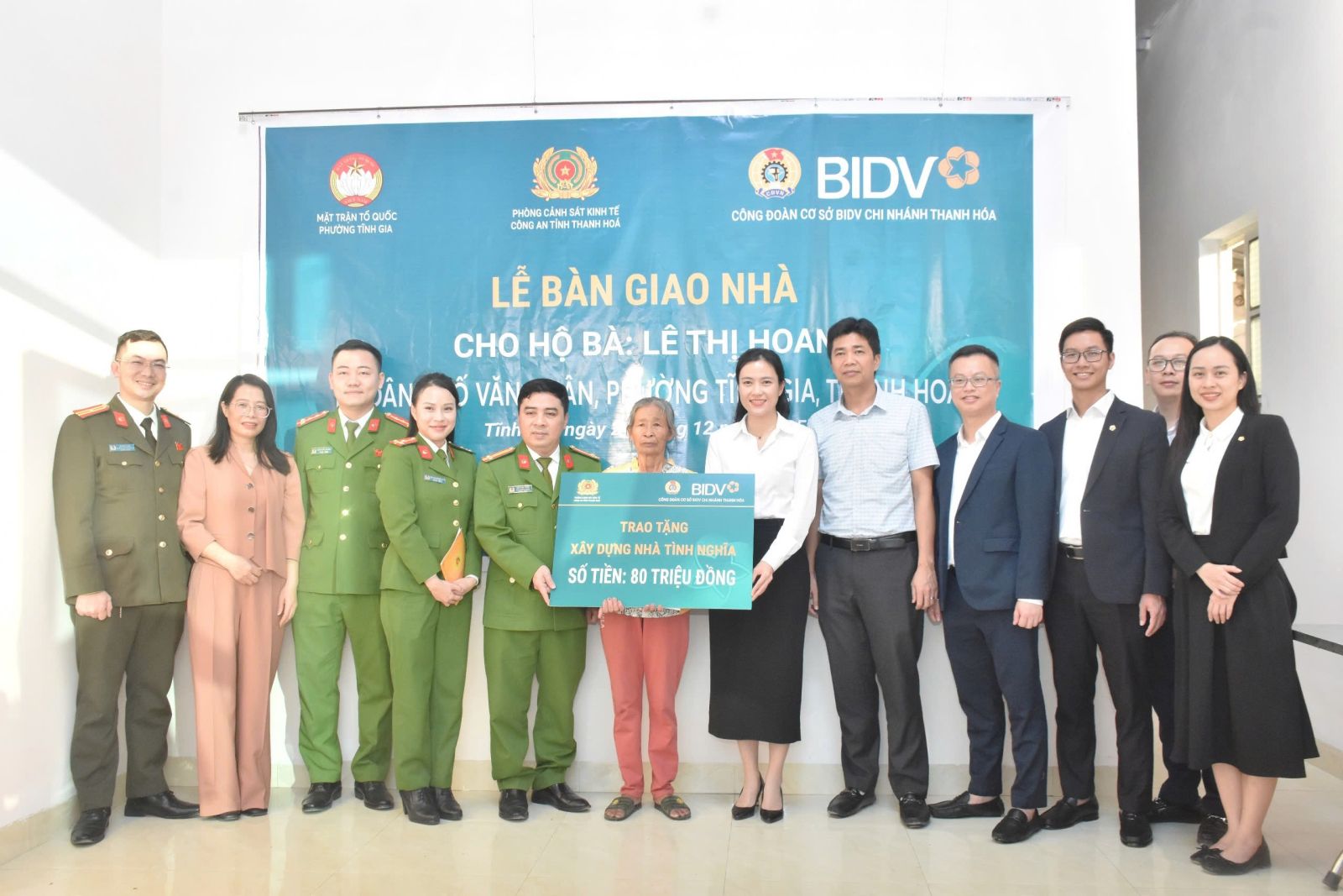 Chi đoàn Phòng Cảnh sát kinh tế phối hợp Ngân hàng BIDV Thanh Hóa bàn giao nhà tình nghĩa cho bà Lê Thị Hoan